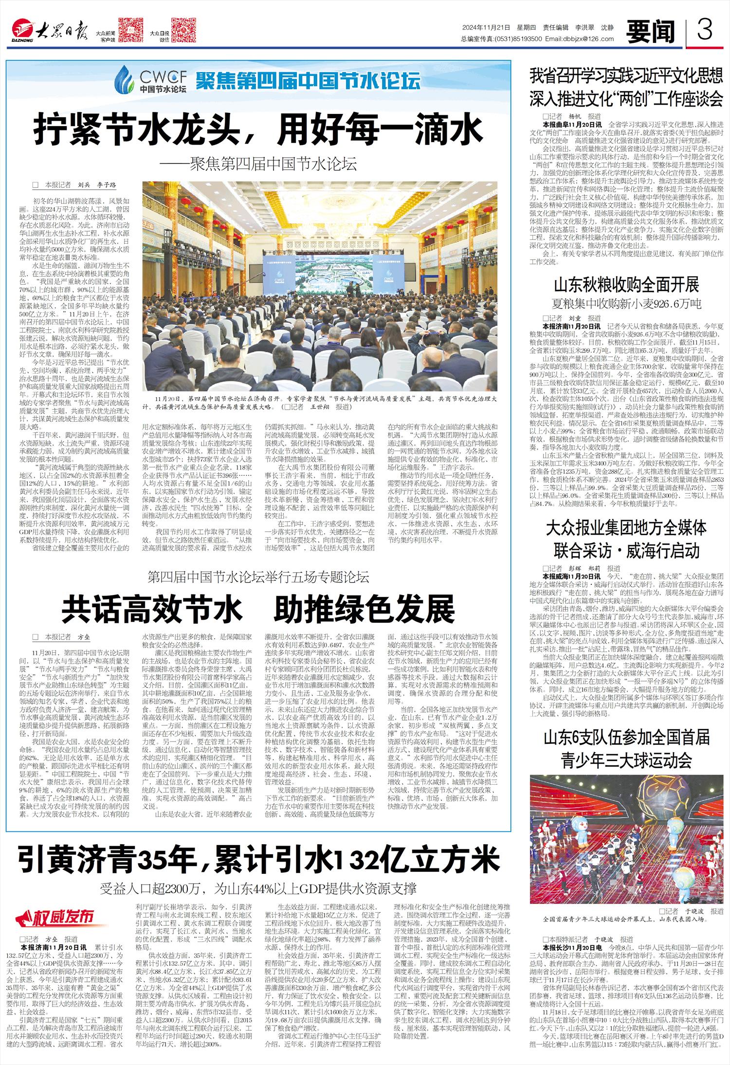 山东玉米产量占全省秋粮产量九成以上,居全国第三位,饲料及玉米深加工年需求玉米3400万吨左右。为做好秋粮收购工作,今年全省准备仓容1235万吨,资金288亿元。扎实推进粮食质量安全管理工作,粮食质检体系不断完善。2024年全省采集玉米质量调查样品2853份,三等以上样品占99.9%。全省采集大豆质量调查样品75份,三等以上样品占96.0%。全省采集花生质量调查样品300份,三等以上样品占84.7%。从检测结果来看,今年秋粮质量好于去年。