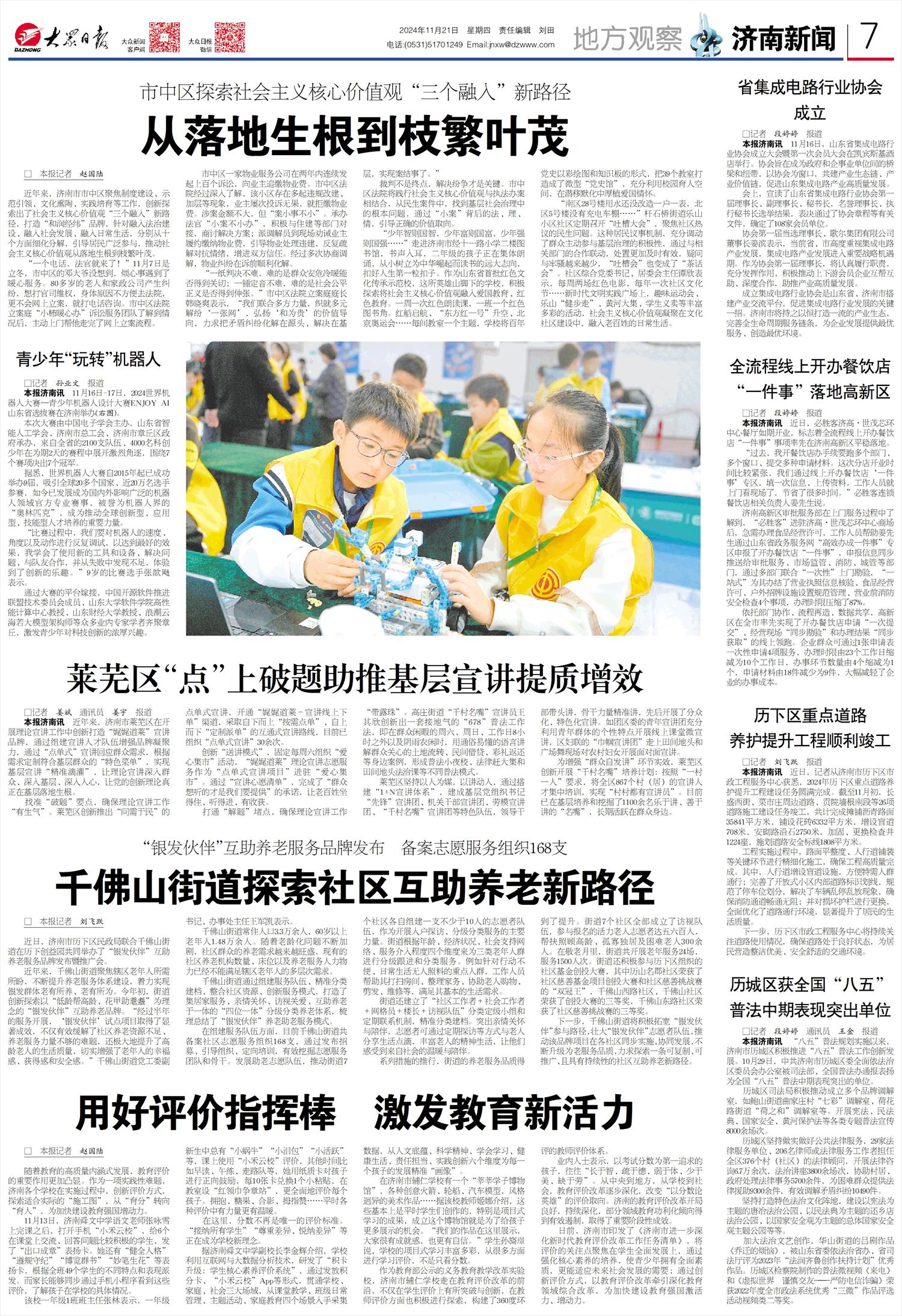 系列措施的推行,街道的养老服务品质得到了提升。街道7个社区全部成立了访视队伍,参与报名的活力老人志愿者达五六百人,帮扶照顾高龄、孤寡独居及困难老人300余人。在敬老月里,街道共开展老年服务24场,服务1500人次。街道还积极参与历下区组织的社区基金创投大赛,其中历山名郡社区荣获了社区慈善基金项目创投大赛和社区慈善挑战赛的“双冠王”,千佛山西路社区、千佛山社区荣获了创投大赛的三等奖,千佛山东路社区荣获了社区慈善挑战赛的三等奖。