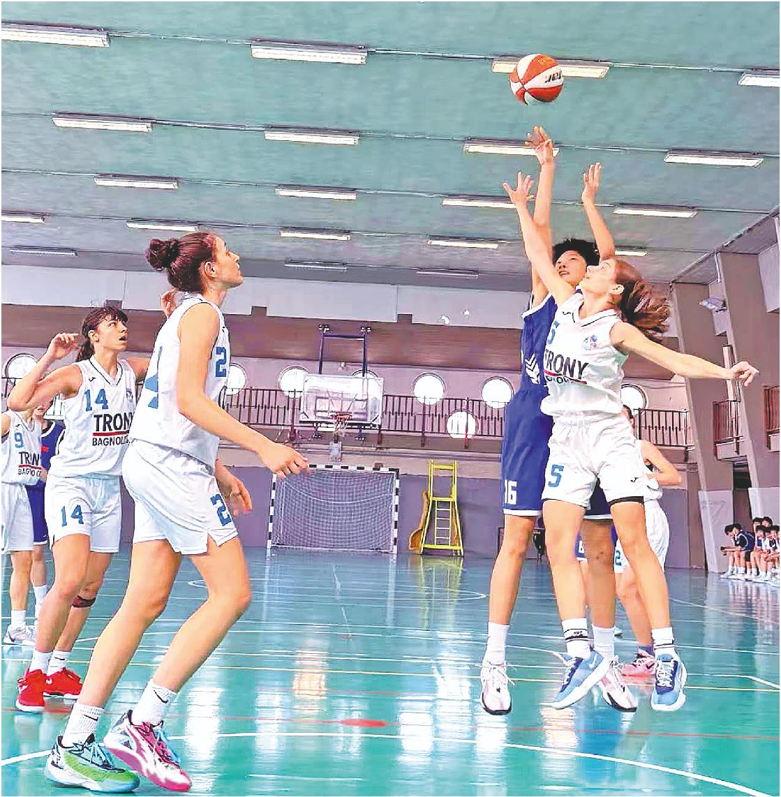 临沂第三十五中学U15女篮在欧洲青少年篮球锦标赛比赛现场。