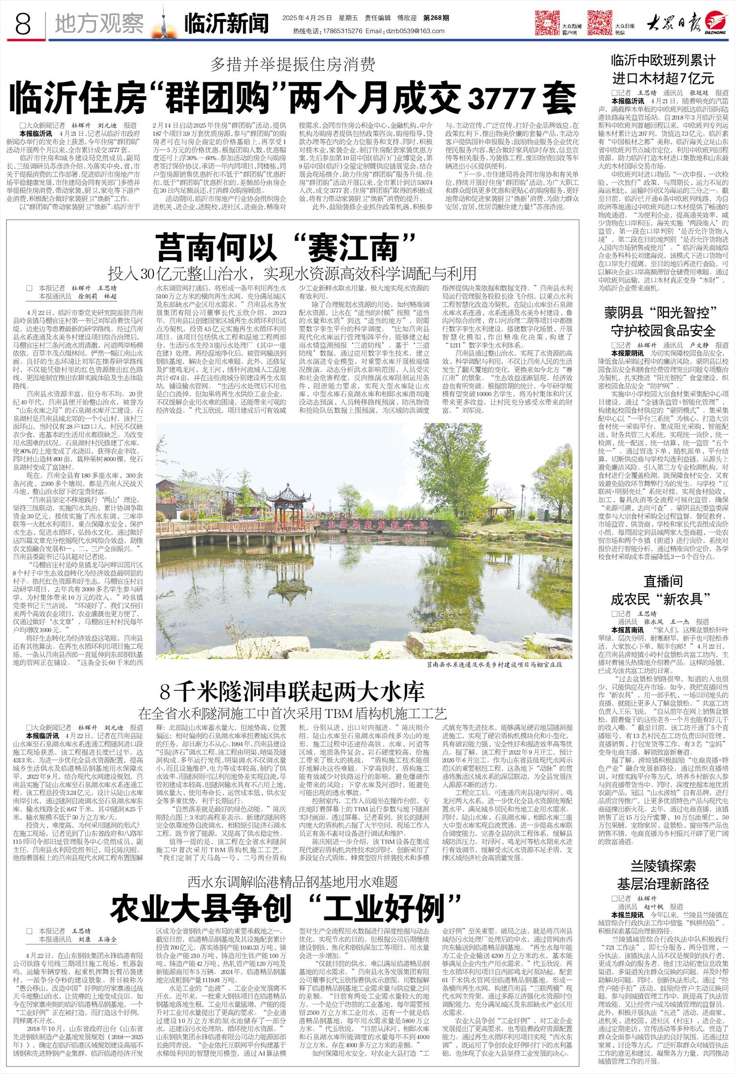 以“群团购”带动家装厨卫“焕新”。临沂市于2月14日启动2025年住房“群团购”活动,提供187个项目3.9万套优质房源,参与“群团购”的购房者可在与房企商定的价格基础上,再享受1万—5万元的价格优惠,根据团购人数,优惠幅度还可上浮30%~60%。参加活动的房企与购房者签订保价协议,承诺一年内同项目、同楼栋、同户型房源销售优惠折扣不低于“群团购”优惠折扣,低于“群团购”优惠折扣的,差额部分由房企在30日内足额返还,打消群众购房顾虑。