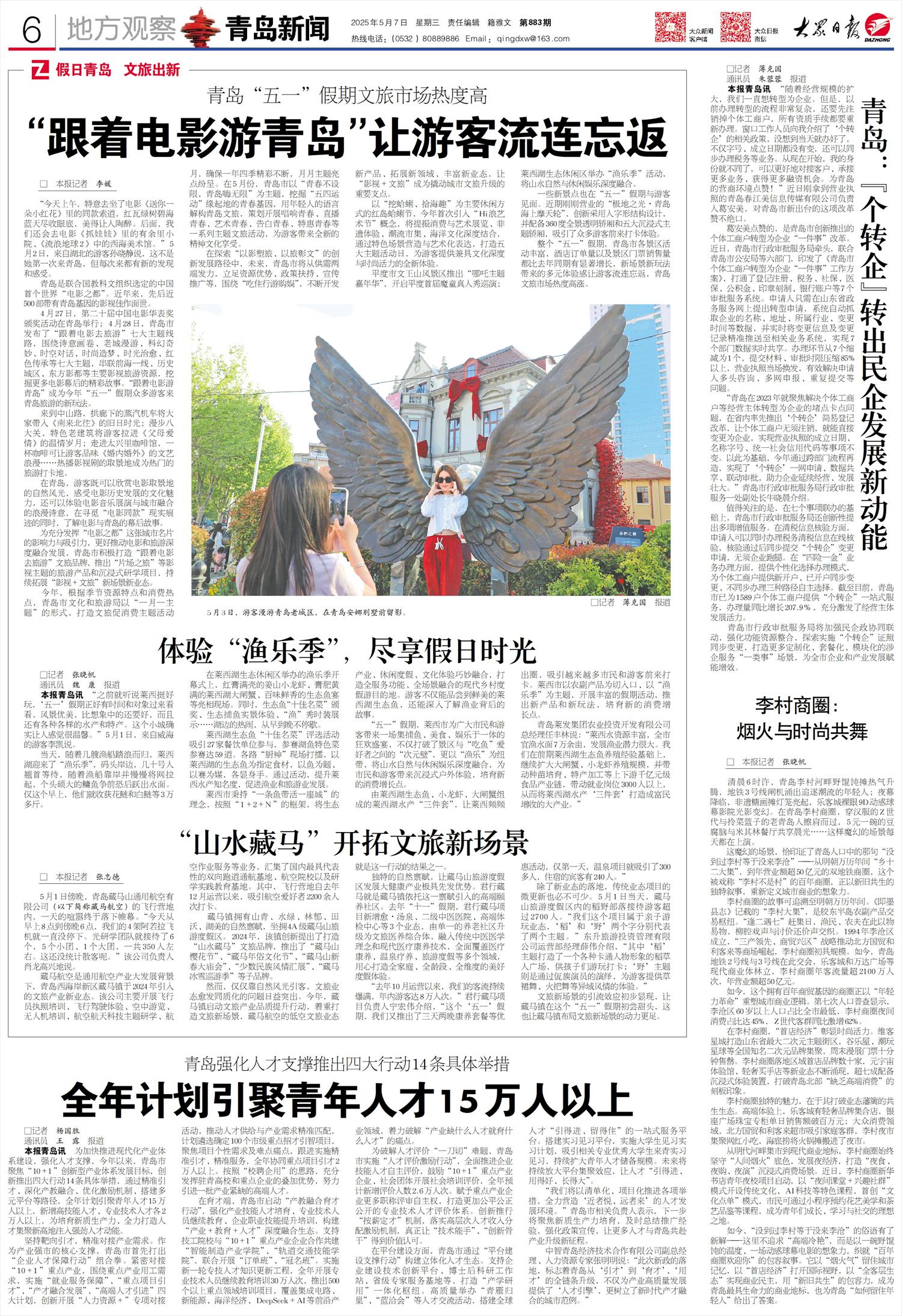葛安美点赞的,是青岛市创新推出的个体工商户转型为企业“一件事”改革。近日,青岛市行政审批服务局牵头,联合青岛市公安局等六部门,印发了《青岛市个体工商户转型为企业“一件事”工作方案》,打通了登记注册、税务、社保、医保、公积金、印章刻制、银行账户等7个审批服务系统。申请人只需在山东省政务服务网上提出转型申请,系统自动抓取企业的名称、地址、所属行业、变更时间等数据,并实时将变更信息及变更记录精准推送至相关业务系统,实现7个部门数据实时共享。办理环节从7个缩减为1个,提交材料、审批时限压缩85%以上,营业执照当场换发,有效解决申请人多头咨询、多网申报、重复提交等问题。