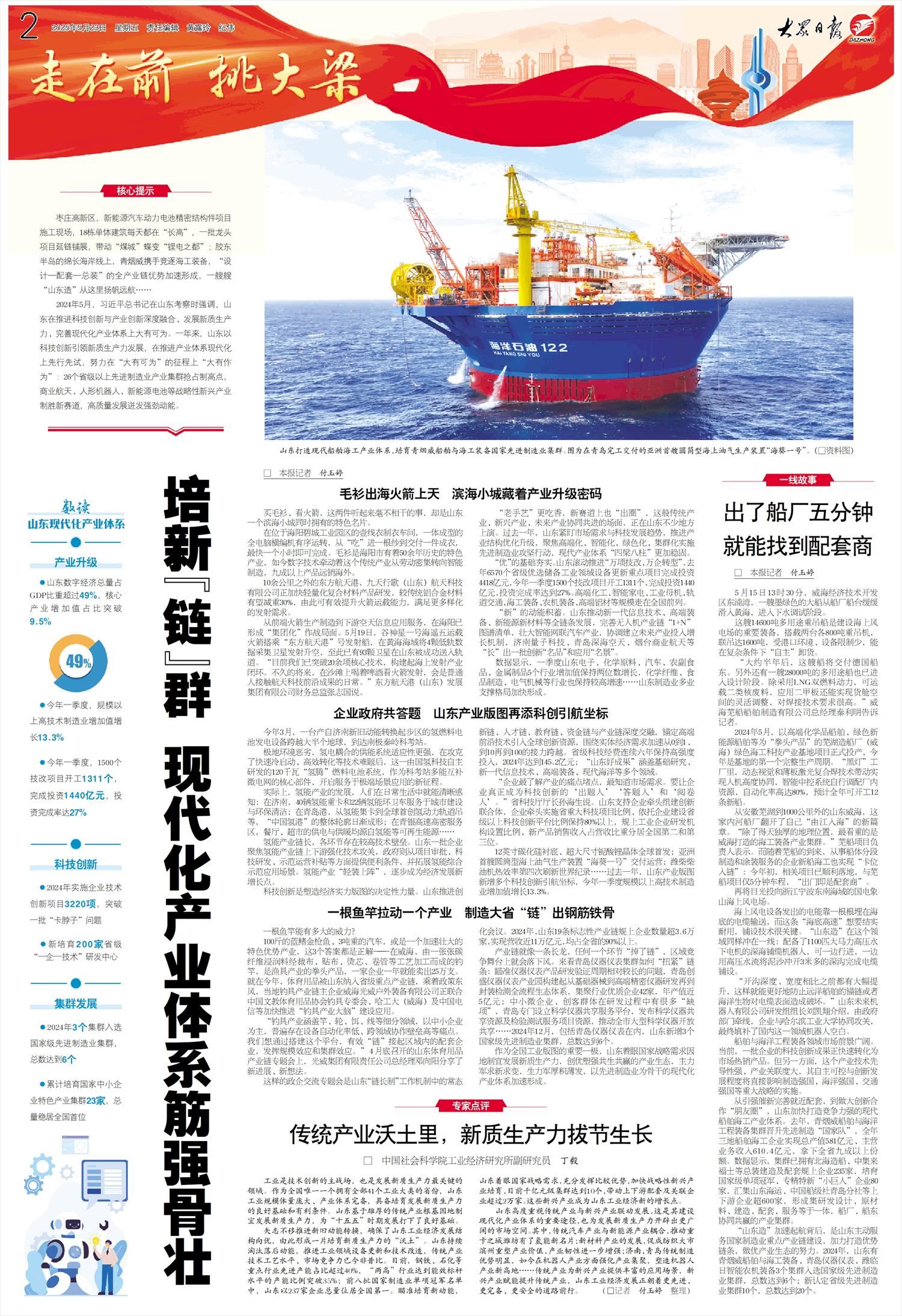 核心提示 枣庄高新区,新能源汽车动力电池精密结构件项目施工现场,18栋单体建筑每天都在“长高”,一批龙头项目延链铺展,带动“煤城”蝶变“锂电之都”;胶东半岛的绵长海岸线上,青烟威携手竞逐海工装备,“设计—配套—总装”的全产业链优势加速形成,一艘艘“山东造”从这里扬帆远航……