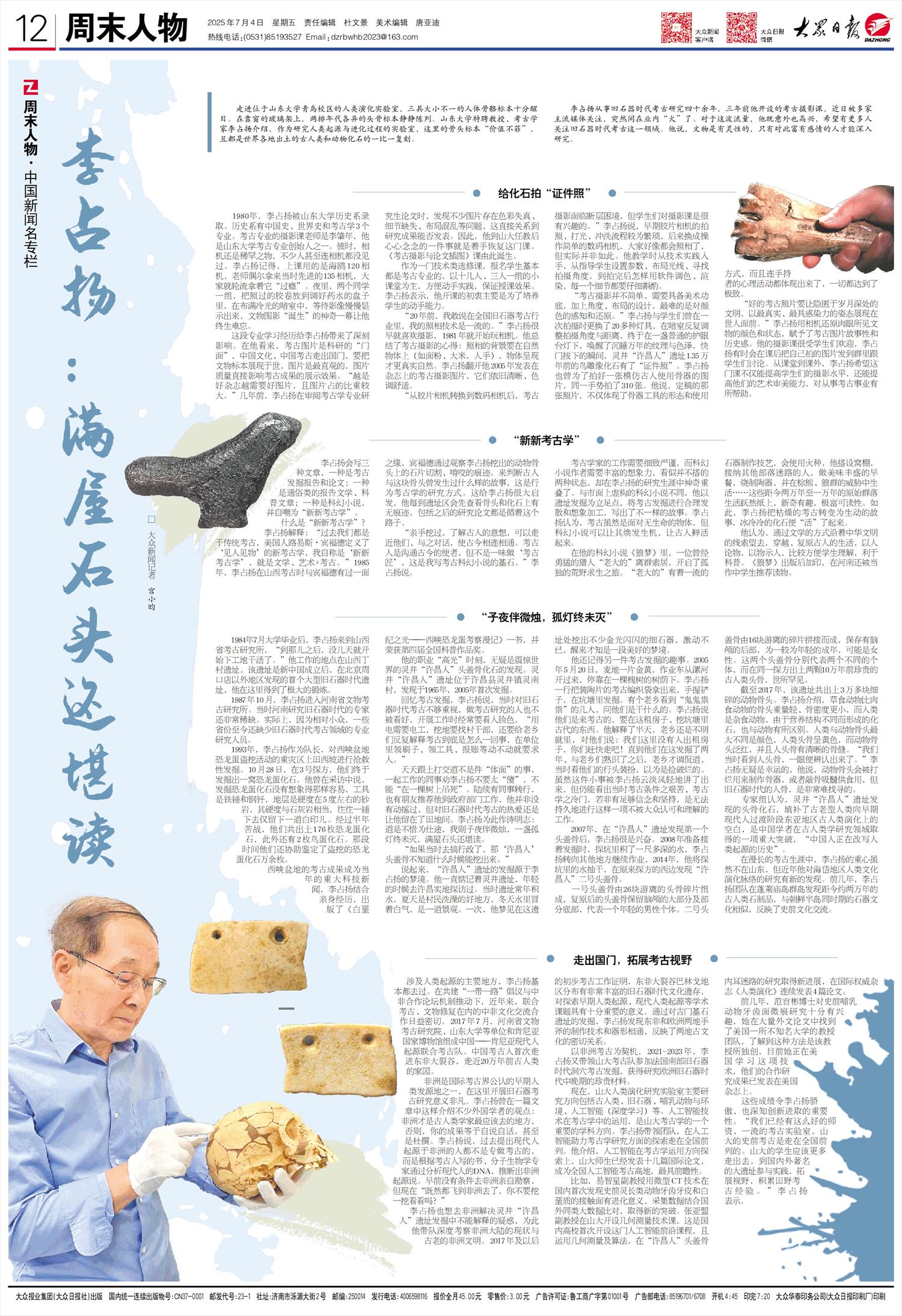 李占扬从事旧石器时代考古研究四十余年,三年前他开设的考古摄影课,近日被多家主流媒体关注,突然间在业内“火”了。对于这波流量,他既意外也高兴,希望有更多人关注旧石器时代考古这一领域。他说,文物是有灵性的,只有对此富有感情的人才能深入研究。