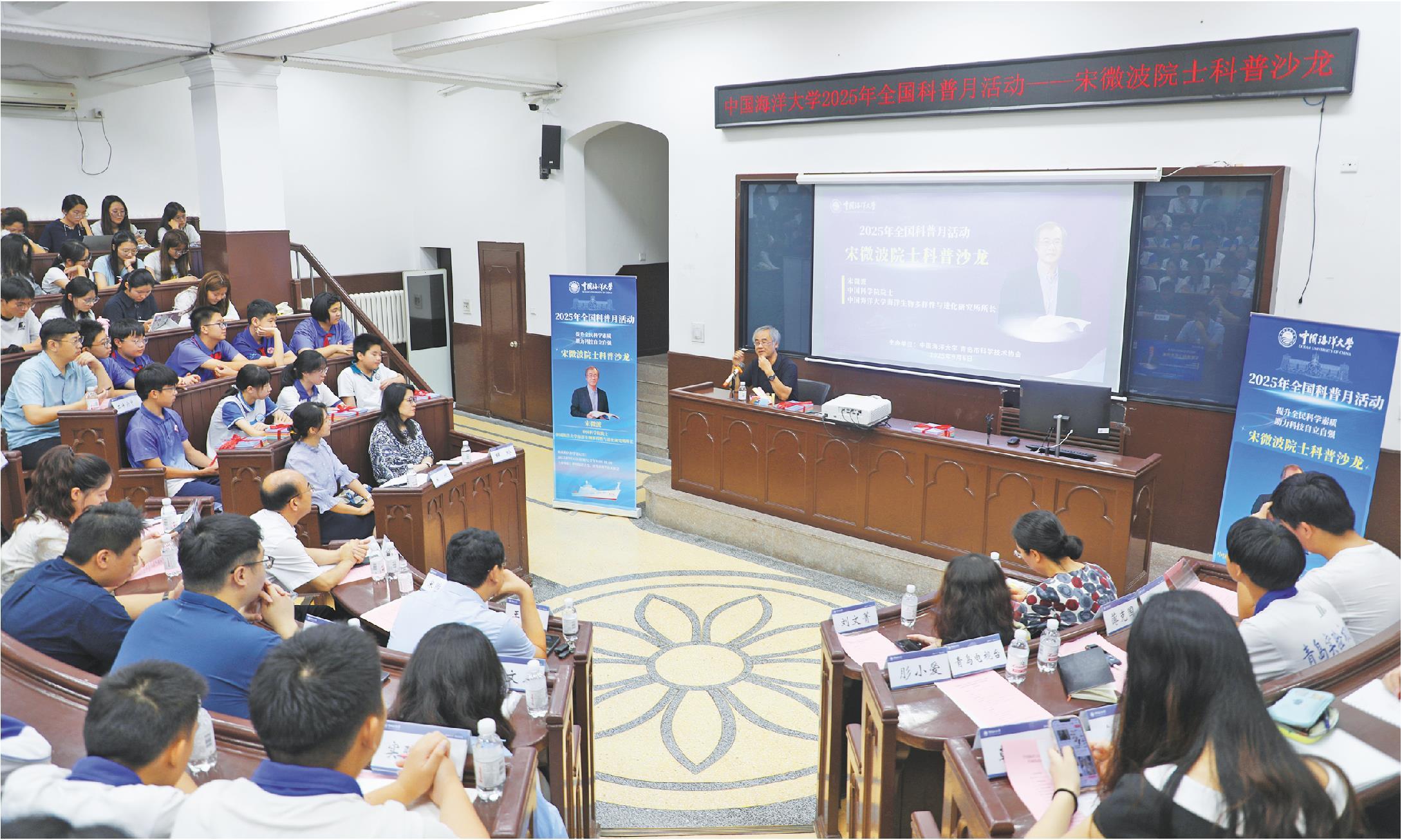 9月6日,由中国海洋大学、青岛市科学技术协会主办的中国海洋大学2025年全国科普月启动仪式暨宋微波院士科普沙龙活动举行。来自青岛实验初级中学、青岛市第二中学、青岛市第三十九中学等学校的近300名学生参加了活动。