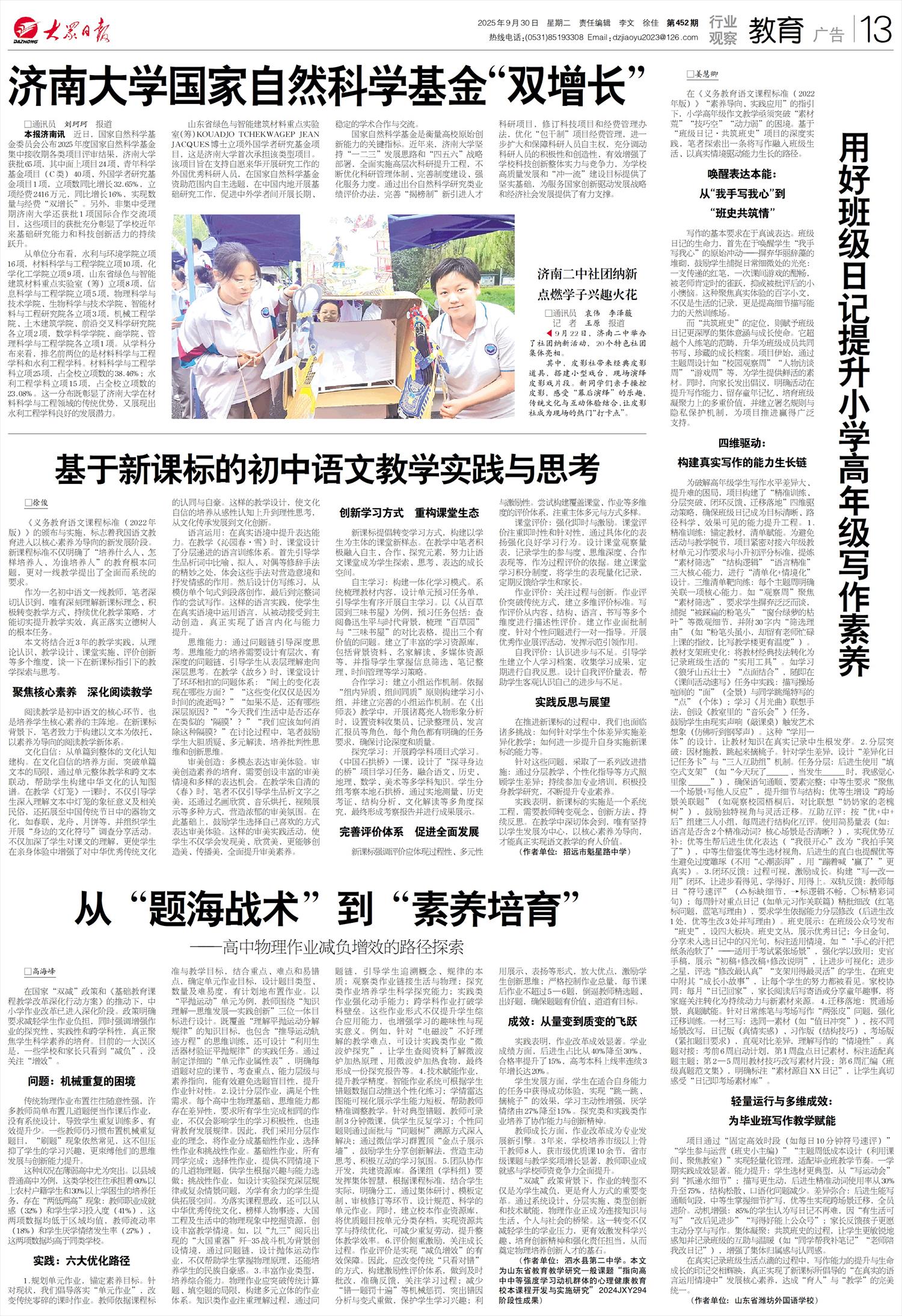 本报济南讯 近日,国家自然科学基金委员会公布2025年度国家自然科学基金集中接收期各类项目评审结果,济南大学获批65项,其中面上项目24项、青年科学基金项目(C类)40项、外国学者研究基金项目1项,立项数同比增长32.65%,立项经费2416万元,同比增长16%,实现数量与经费“双增长”。另外,非集中受理期济南大学还获批1项国际合作交流项目,这些项目的获批充分彰显了学校近年来基础研究能力和科技创新活力的持续跃升。