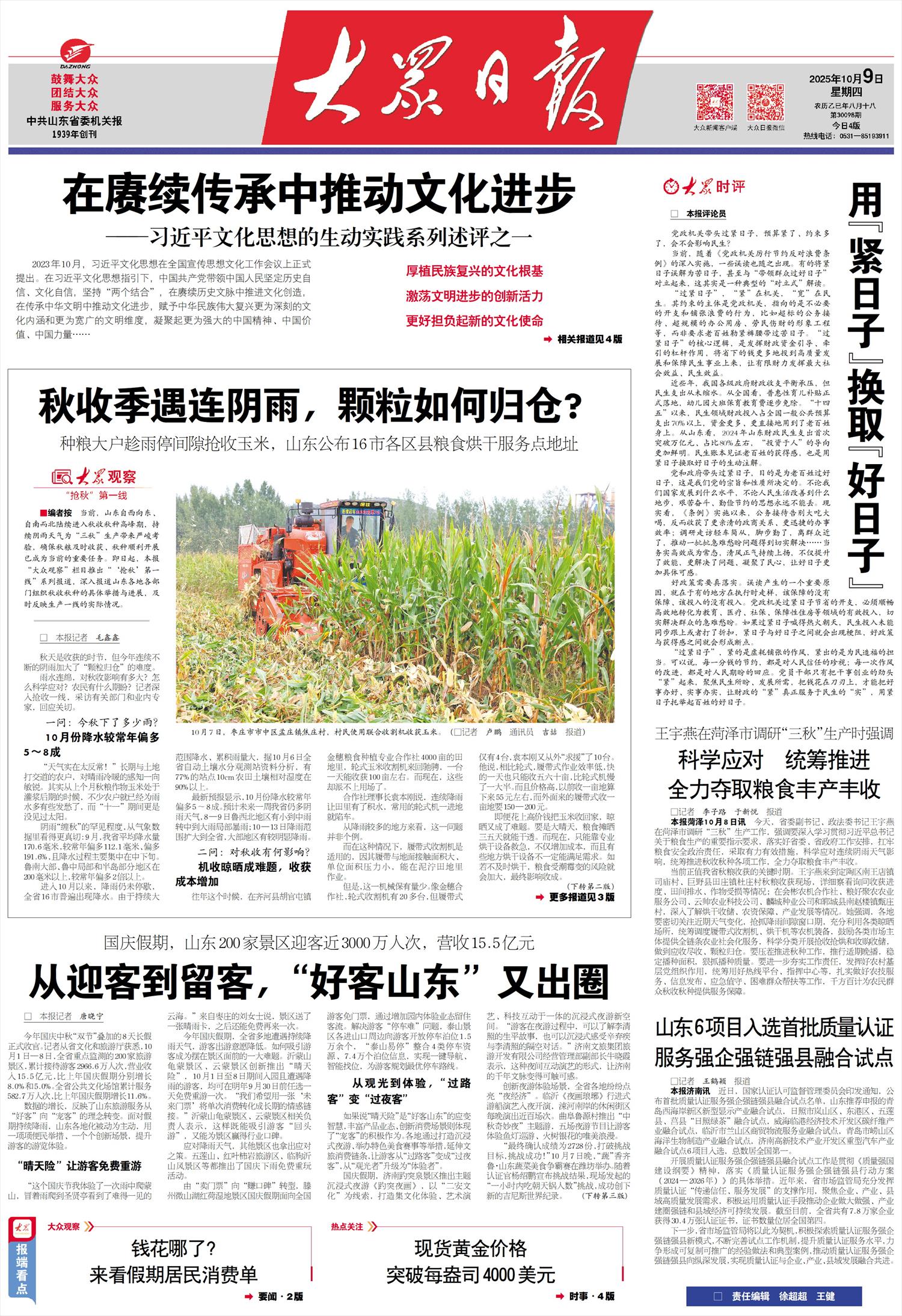 由“卖门票”向“赚口碑”转型,滕州微山湖红荷湿地景区国庆假期面向全国游客免门票,通过增加园内体验业态留住客流。解决游客“停车难”问题,泰山景区各进山口周边向游客开放停车泊位1.5万余个,“泰山易停”整合4类停车资源、7.4万个泊位信息,实现一键导航、智能找位,为游客规划最优停车路线。