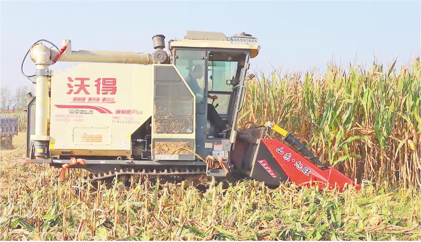 秋粮抢收,农机是关键“利器”。在巨野县玉米种植田里,多台履带式玉米收割机穿梭作业,一次性完成收割、摘穗、脱粒、秸秆粉碎还田。