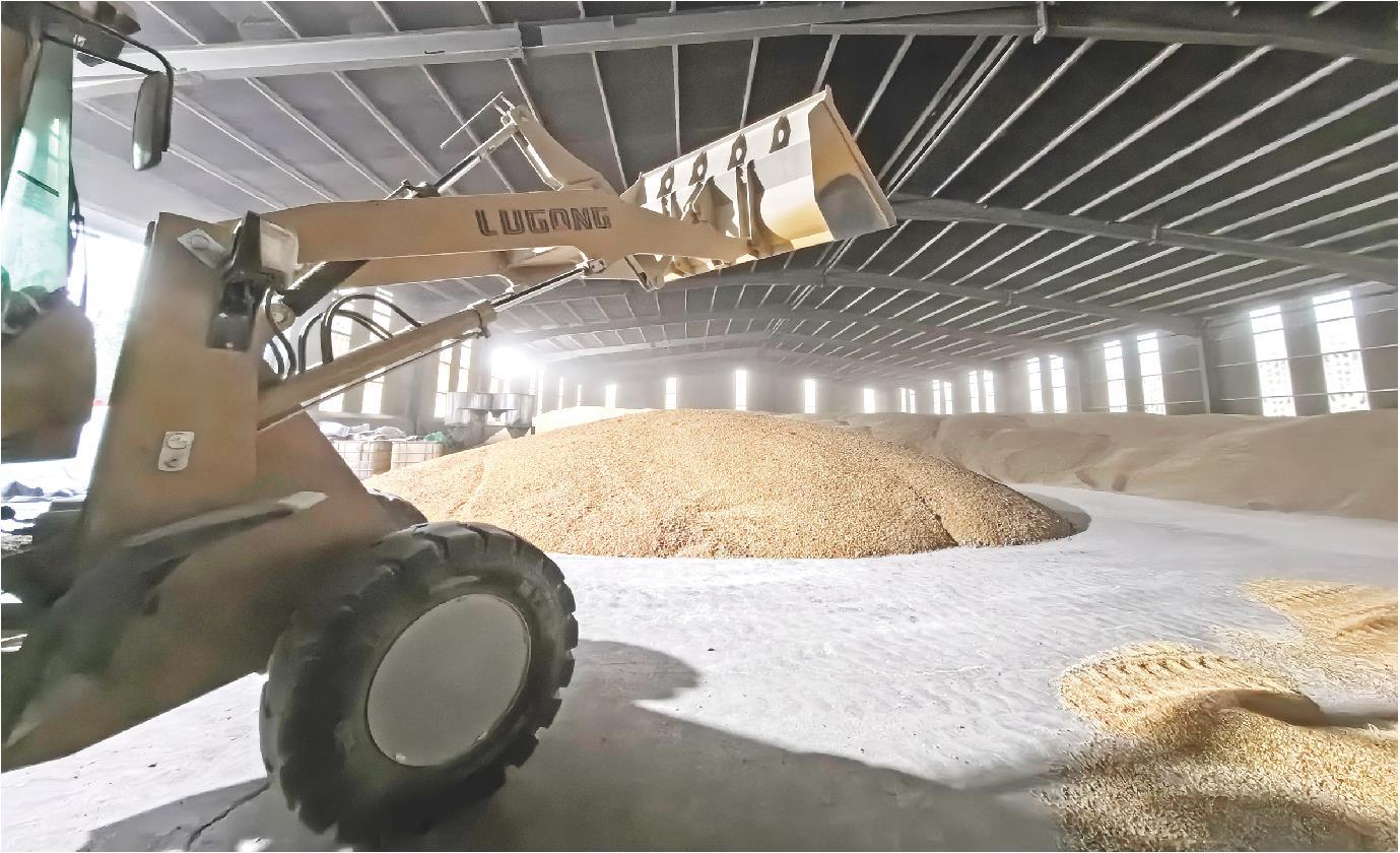 鲁望公司有13台循环式烘干机和2座连续式烘干塔。“循环式就是烘完这一批,排空后再进行下一批作业,日烘干能力约400吨;连续式的特点是这边源源不断地进,那边源源不断地出,日烘干能力为600吨。目前我们日烘干能力约为2000亩地的产量。”何石宝说。
