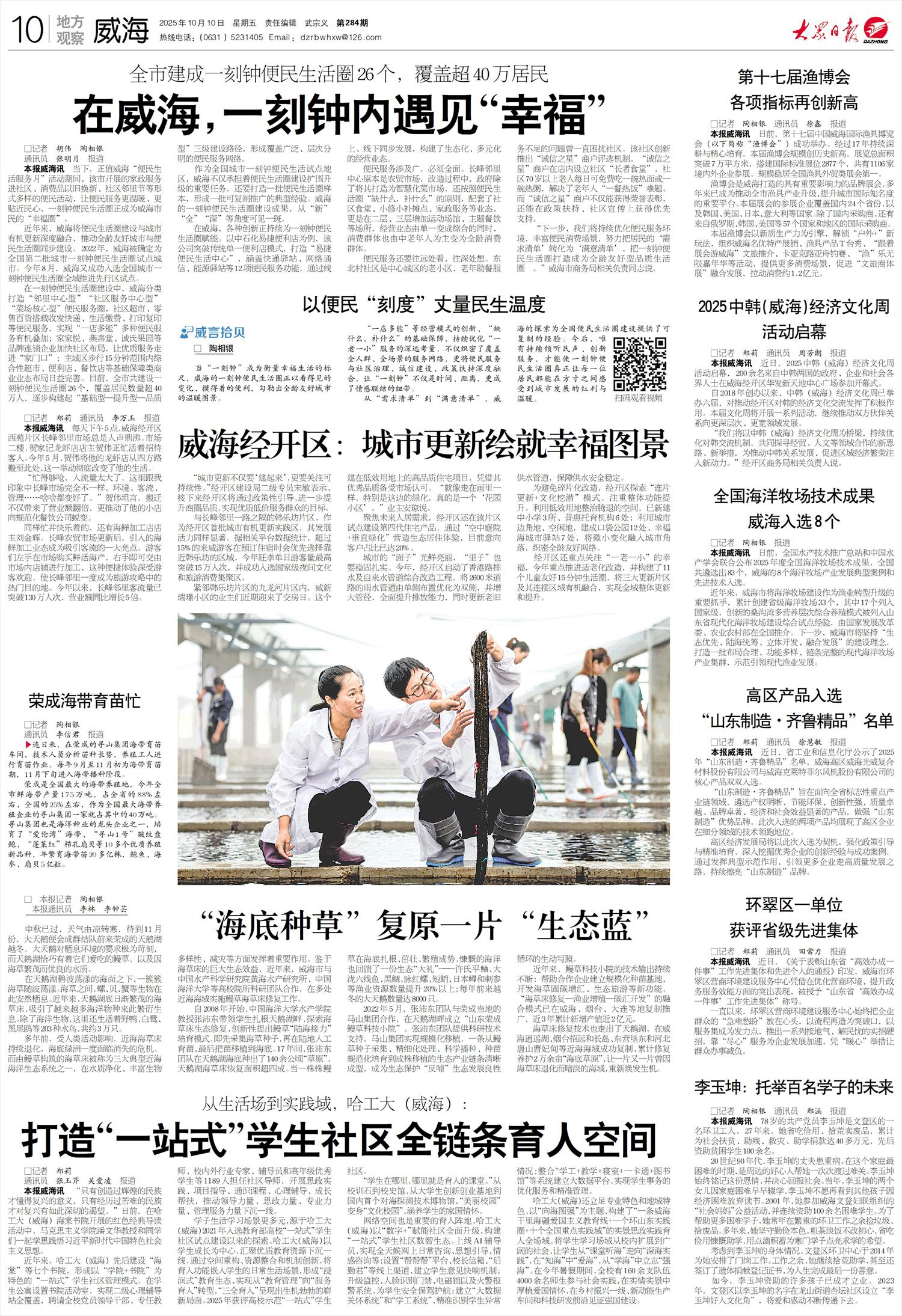 哈工大(威海)还立足专业特色和地域特色,以“向海图强”为主题,构建了“一条威海千里海疆爱国主义教育线+一个环山东实践圈+十个全国重点实践域”的实景思政实践育人全场域,将学生学习场域从校内扩展到广阔的社会,让学生从“课堂听海”走向“深海实践”,在“知海”中“爱海”,从“学海”中立志“强海”。在今年暑假期间,全校有160余支队伍4000余名师生参与社会实践,在实情实景中厚植爱国情怀,在乡村振兴一线、新动能生产车间和科技研发前沿见证强国建设。