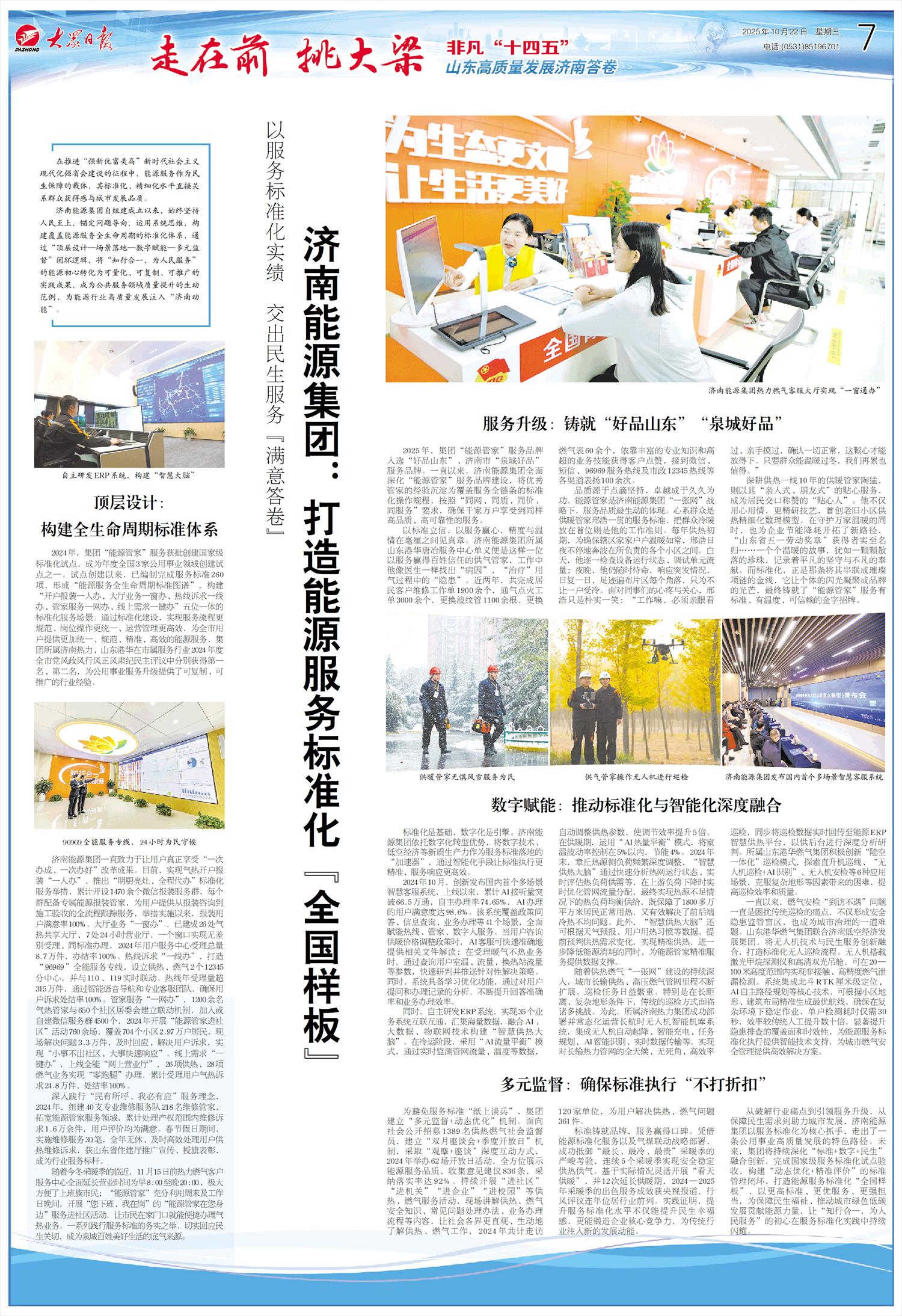 标准化是基础,数字化是引擎。济南能源集团依托数字化转型优势,将数字技术、低空经济等新质生产力作为服务标准落地的“加速器”,通过智能化手段让标准执行更精准、服务响应更高效。