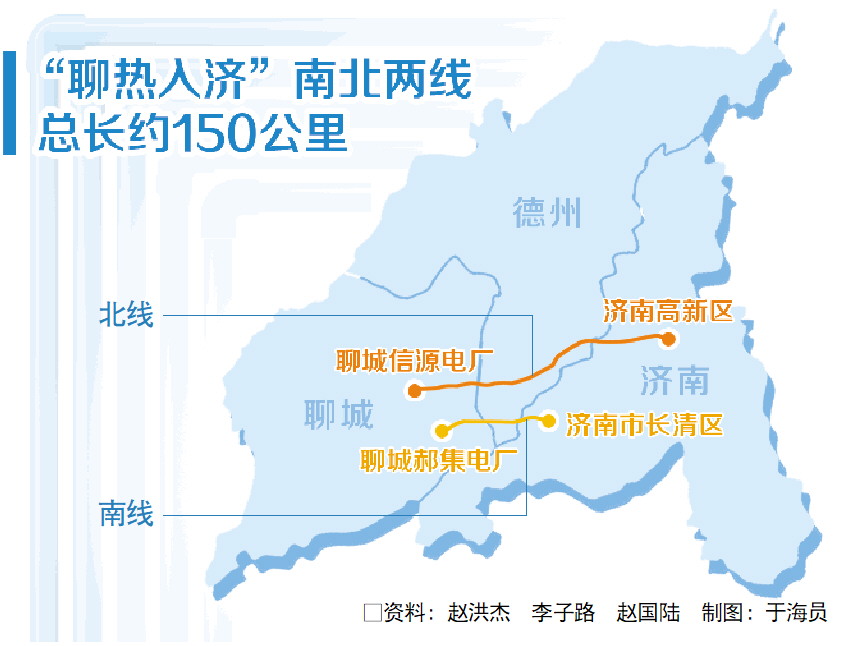 除了北线,“聊热入济”南线也将于年底前贯通。届时,总长约150公里的南北两线可为济南供暖1亿平方米,预计每个供暖季可减少标煤消耗129.89万吨,减排二氧化碳356.4万吨,相当于4个塞罕坝林场一年的固碳量。