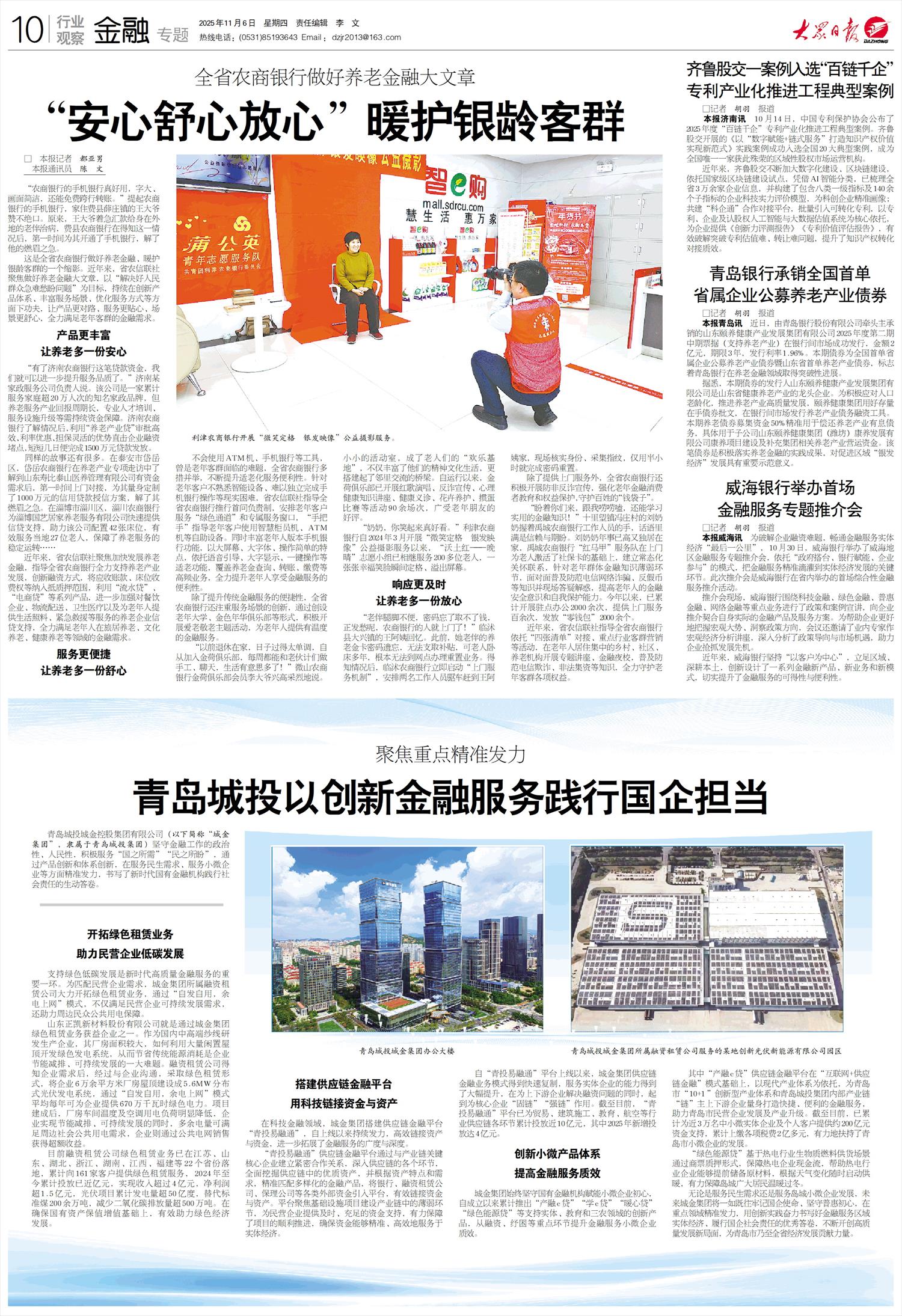 青岛城投城金控股集团有限公司(以下简称“城金集团”,隶属于青岛城投集团)坚守金融工作的政治性、人民性,积极服务“国之所需”“民之所盼”,通过产品创新和体系创新,在服务民生需求、服务小微企业等方面精准发力,书写了新时代国有金融机构践行社会责任的生动答卷。