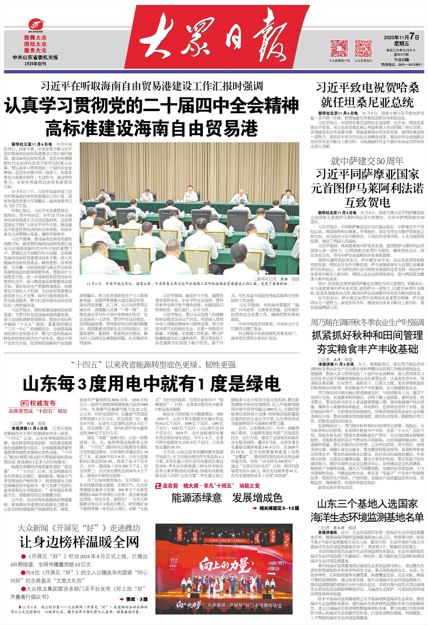 本报济南11月6日讯 记者从省政府新闻办今天举行的新闻发布会上获悉,“十四五”以来,山东统筹能源供应保障、绿色转型和改革创新,加快建设能源绿色低碳转型示范区,全省能源高质量发展取得突破性进展和历史性成就,“十四五”规划《纲要》提出的主要能源指标将如期完成,有效满足1亿多人的用能需求。