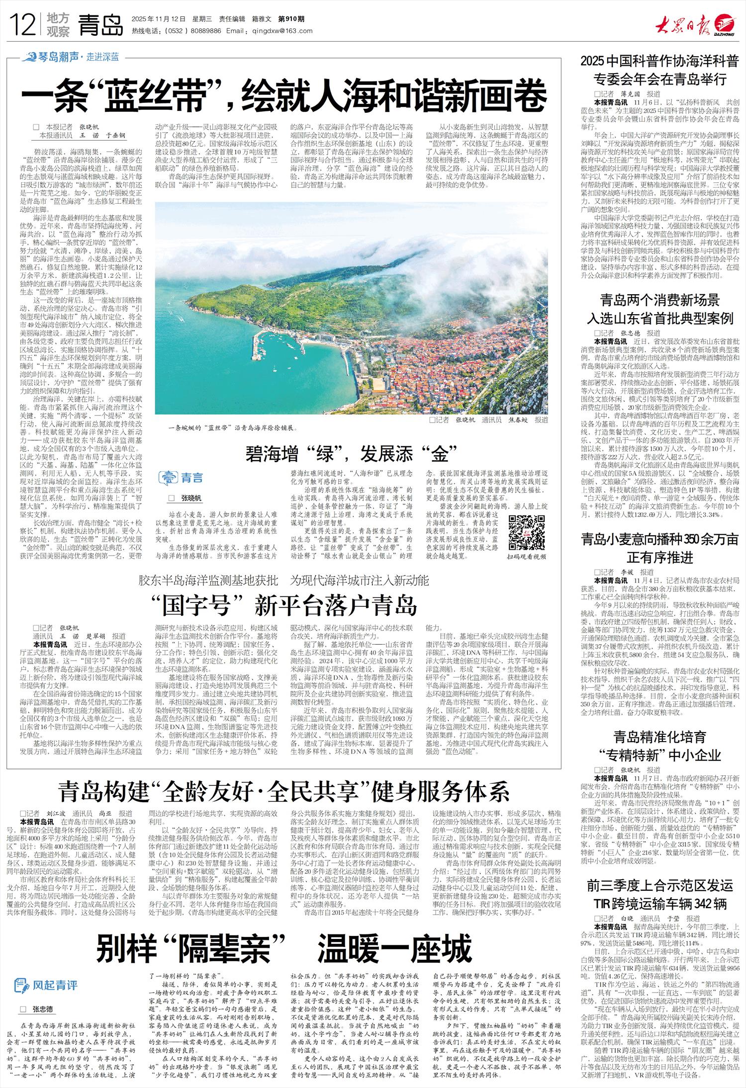 本报青岛讯 11月6日,以“弘扬科普新风 共创蓝色未来”为主题的2025中国科普作家协会海洋科普专业委员会年会暨山东省科普创作协会年会在青岛举行。