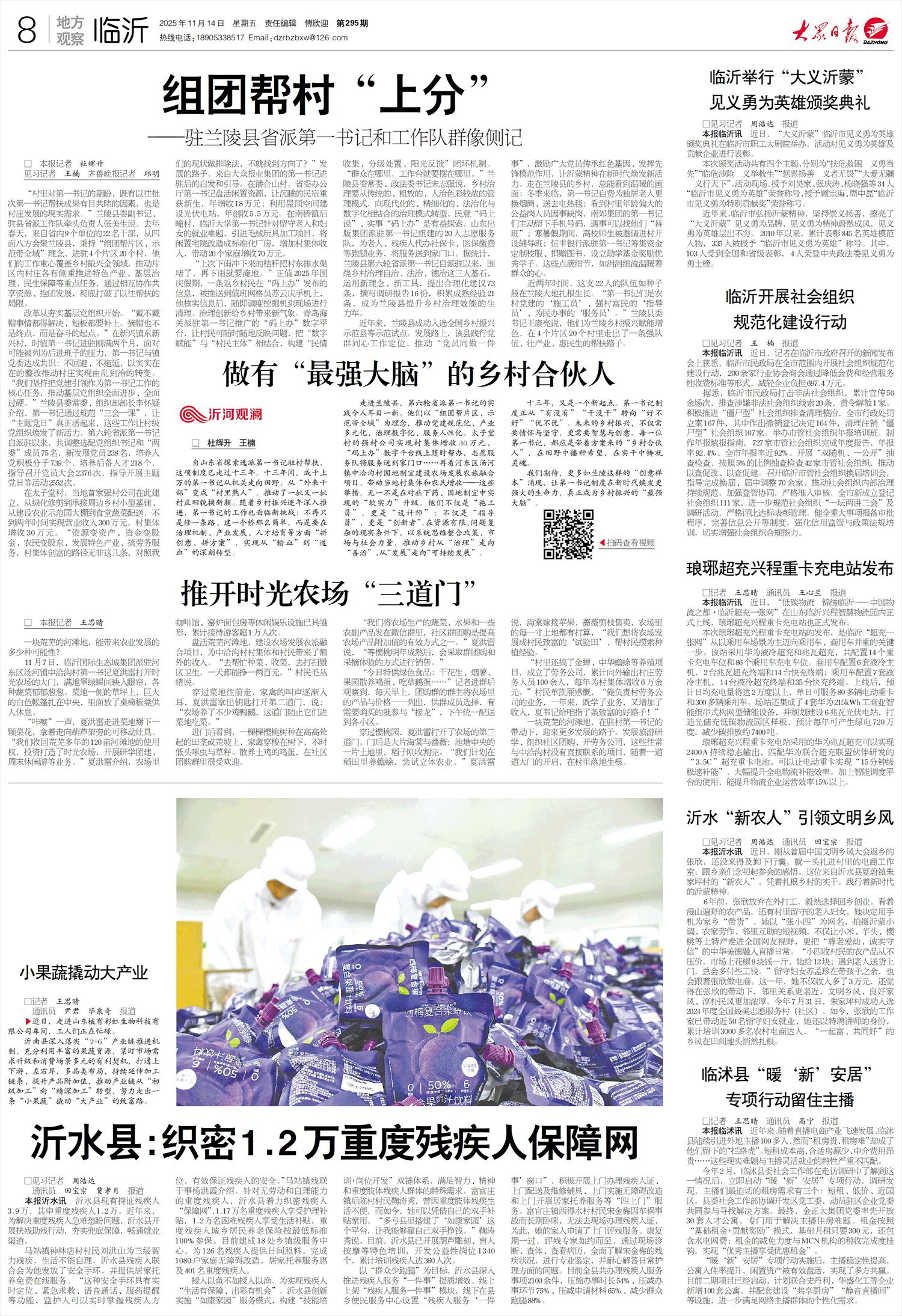 走进兰陵县,第六轮省派第一书记的实践令人耳目一新。他们以“组团帮片区、示范带全域”为理念,推动党建规范化、产业多元化、治理数字化、服务人性化。太子堂村的强村公司实现村集体增收30万元,“码上办”数字平台线上随时帮办,志愿服务队将服务送到家门口……再看河东区汤河镇中洽沟村因地制宜建设农场发展农旅融合项目,带动当地村集体和农民增收——这些举措,无一不是在对症下药、因地制宜中实现的“软实力”升级。他们不仅是“施工员”,更是“设计师”;不仅是“指导员”,更是“创新者”。在资源有限、问题复杂的现实条件下,以系统思维整合政策、市场与社会力量,推动乡村从“治理”走向“善治”,从“发展”走向“可持续发展”。