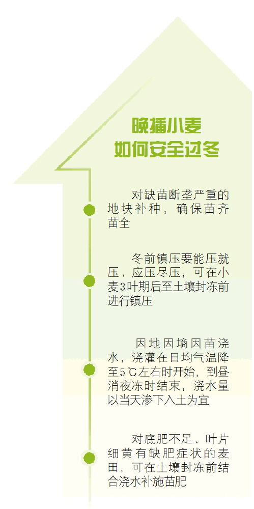 另外,杨久涛提醒,对底肥不足、叶片细黄有缺肥症状的麦田,可在土壤封冻前,结合浇水补施苗肥,促苗早发快长。同时,做好病虫害监测,早发现、准研判、快预警、抓防控。