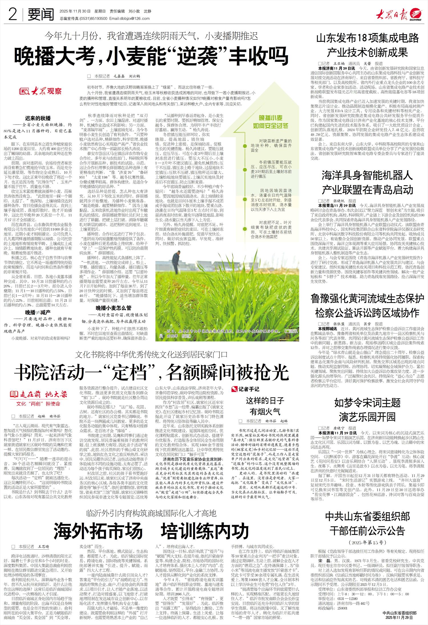 初冬时节,齐鲁大地的沃野田畴渐渐换上了“绿装”,而这比往年晚了一些。