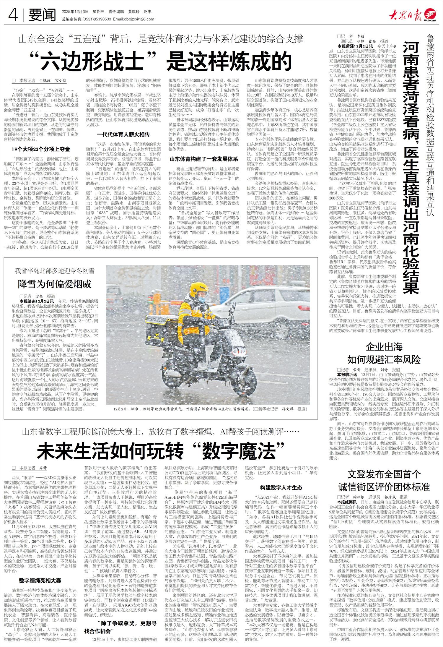 从顶层引领到全民参与,从精神传承到战略支撑,山东体育构建的这套发展体系,不仅是夺冠的“密码”,更为地区体育事业的高质量发展提供了实践范例。