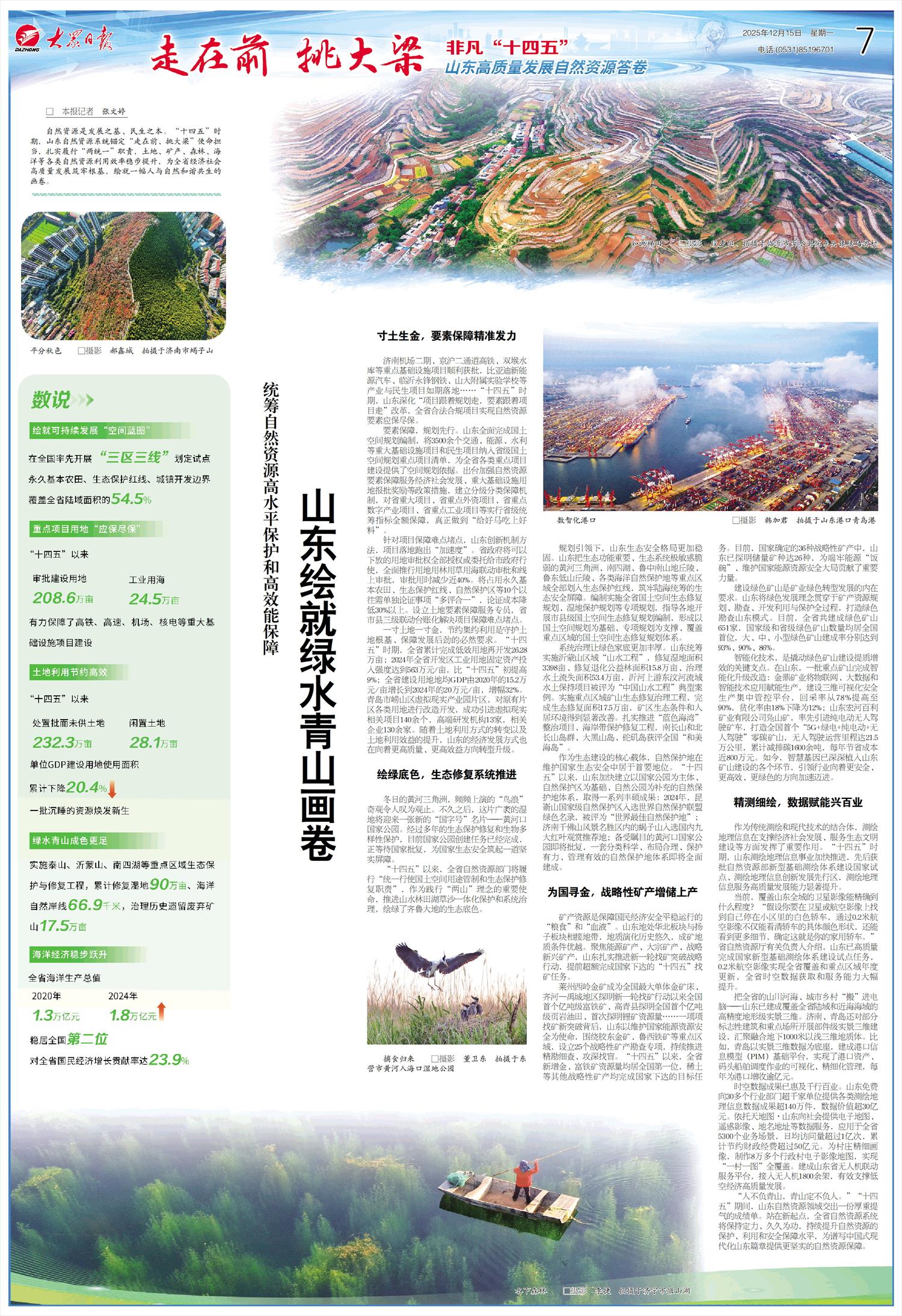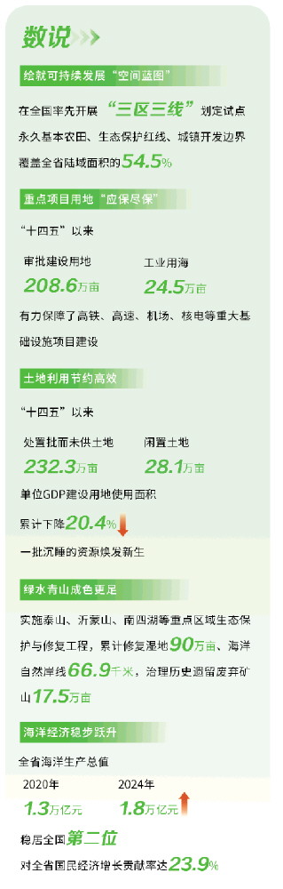 自然资源是发展之基、民生之本。“十四五”时期,山东自然资源系统锚定“走在前、挑大梁”使命担当,扎实履行“两统一”职责,土地、矿产、森林、海洋等各类自然资源利用效率稳步提升,为全省经济社会高质量发展筑牢根基,绘就一幅人与自然和谐共生的画卷。