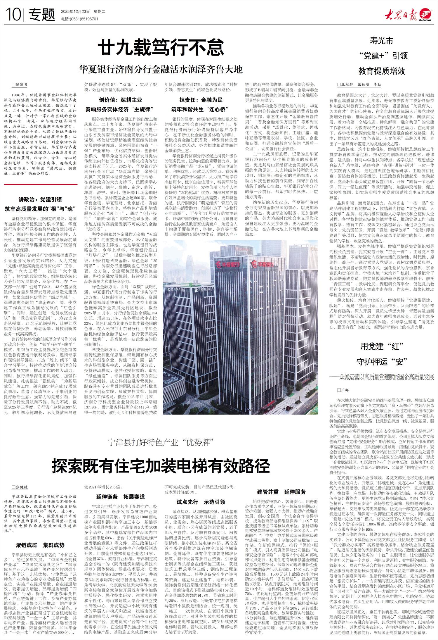 二十九载风雨兼程,记录的是华夏银行济南分行从生根到繁茂的成长轨迹,更是其与山东经济社会发展同频共振的生动见证。从支持绿色转型的宏大项目,到润泽小微企业的涓涓细流;从助力科技创新的前沿突破,到守护百姓钱袋子的贴心宣教,华夏银行济南分行的每一步前行,都紧扣时代脉搏,回应地方所需。
