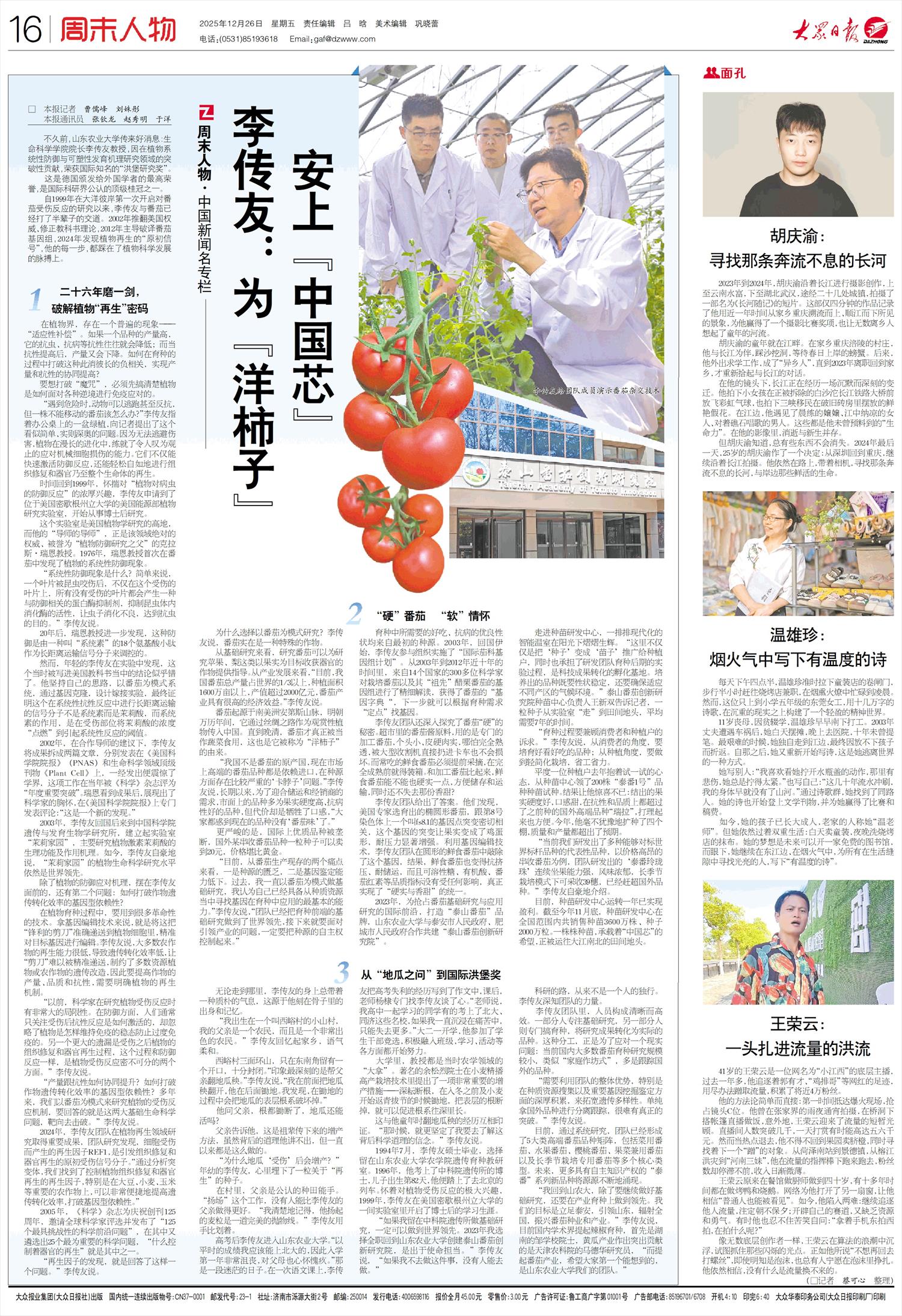 “如果我留在中科院遗传所做基础研究,一定可以做到世界领先。2023年我选择全职回到山东农业大学创建泰山番茄创新研究院,是出于使命担当。”李传友说,“如果我不去做这件事,没有人能去做。”
