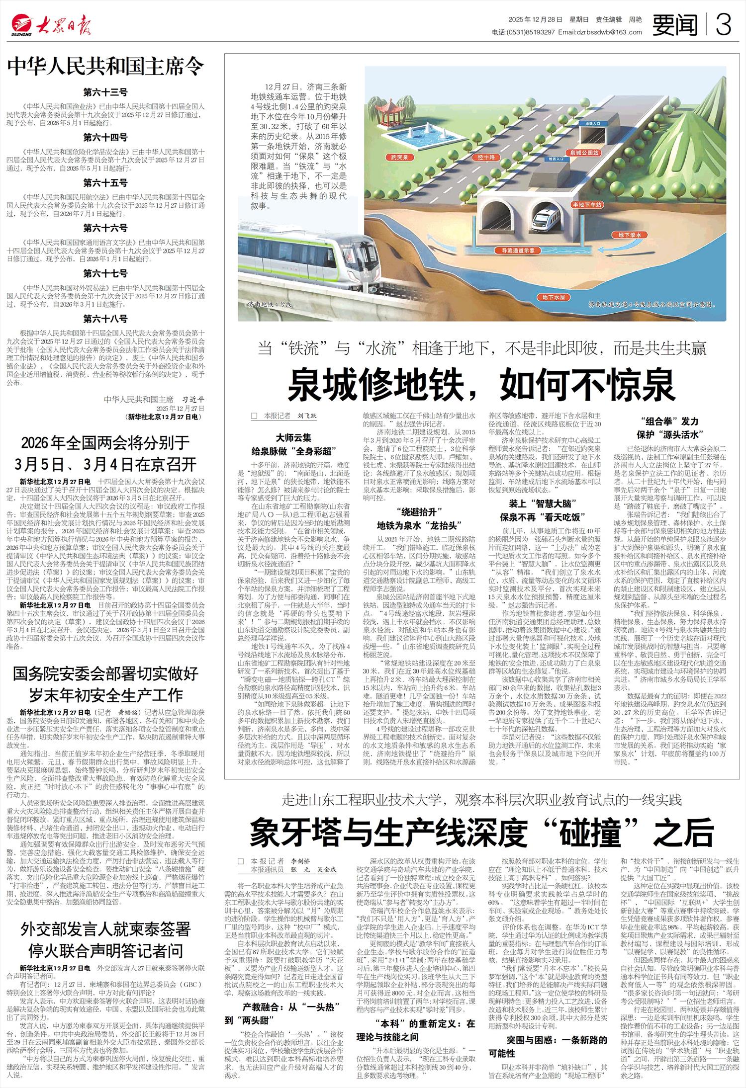 12月27日,济南三条新地铁线通车运营。位于地铁4号线北侧1.4公里的趵突泉地下水位在今年10月份攀升至30.32米,打破了60年以来的历史纪录。从2015年修第一条地铁开始,济南就必须面对如何“保泉”这个极限难题。当“铁流”与“水流”相逢于地下,不一定是非此即彼的抉择,也可以是科技与生态共舞的现代叙事。