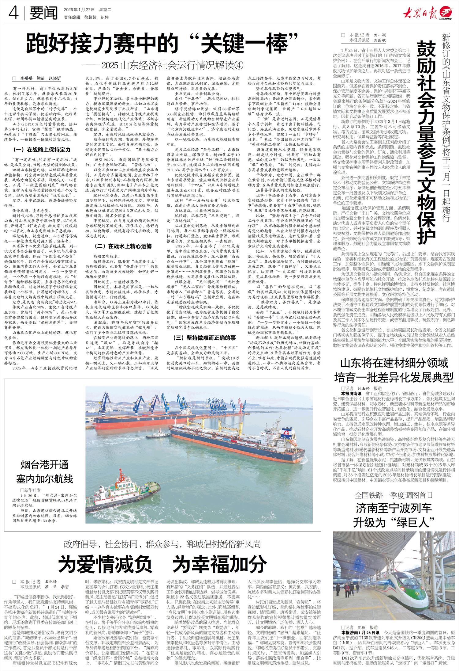 1月25日,省十四届人大常委会第二十次会议表决通过了新修订的《山东省文物保护条例》。在会后举行的新闻发布会上,记者了解到,这是我省继2016年、2017年修改文物保护条例之后,再次对这一条例进行全面修订。