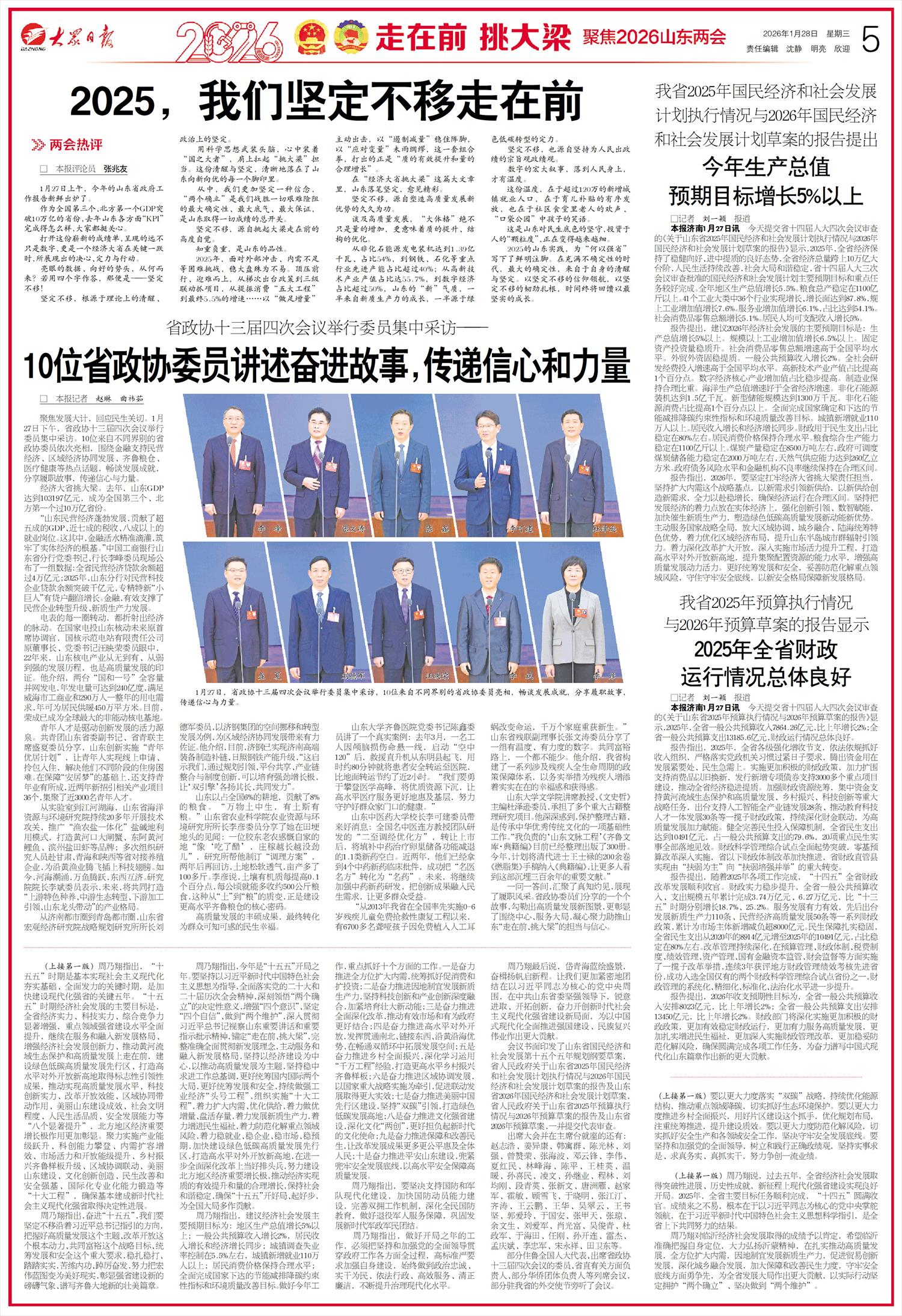 本报济南1月27日讯 今天提交省十四届人大四次会议审查的《关于山东省2025年预算执行情况与2026年预算草案的报告》显示,2025年,全省一般公共预算收入7864.26亿元,比上年增长2%;全省一般公共预算支出13185.6亿元,财政运行情况总体良好。