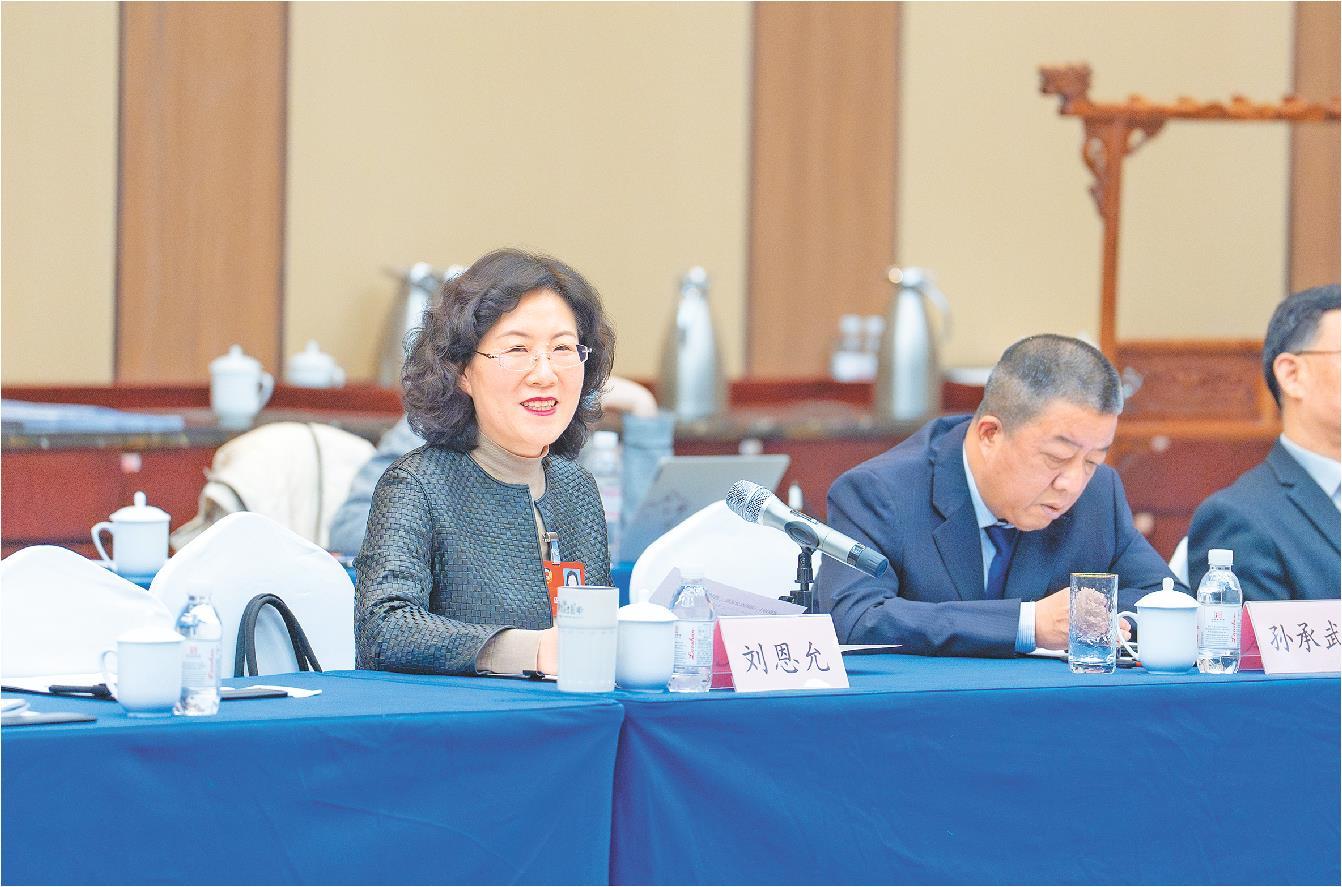 在1月27日的小组会议上,刘恩允(左)委员就政府工作报告中促进人口高质量发展等内容,建议发挥我省文化大省优势,倡导新型婚育观。