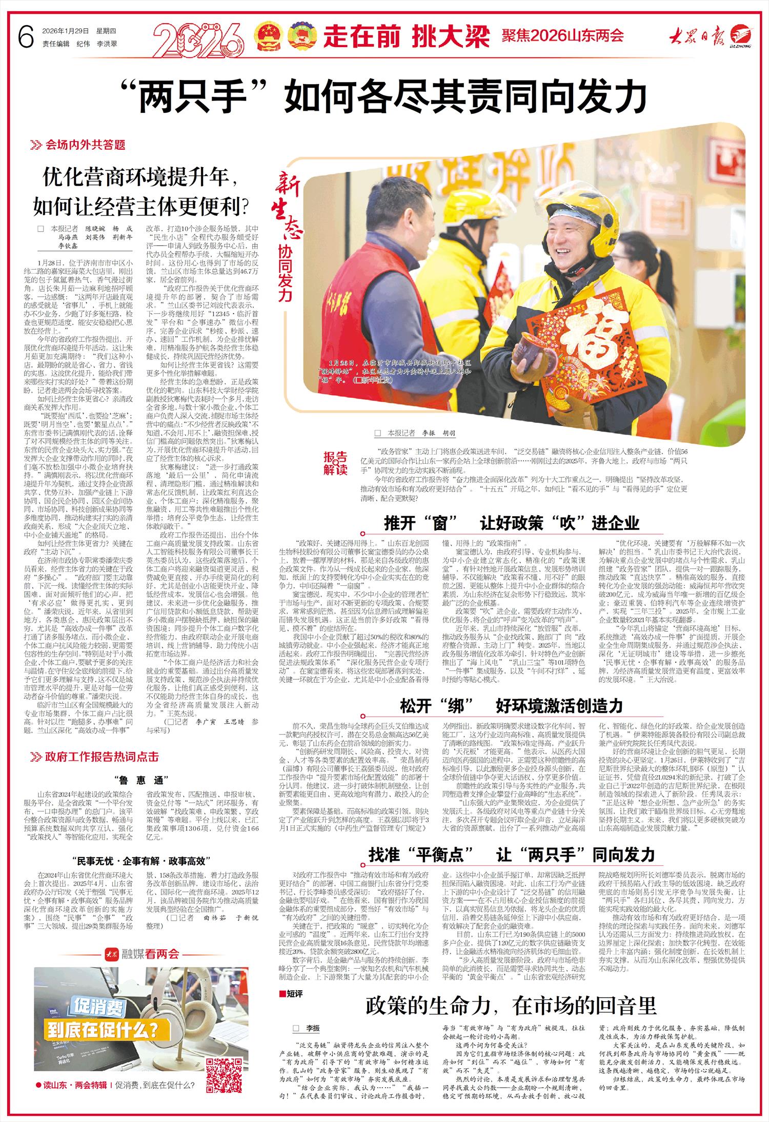 “政务管家”主动上门将惠企政策送进车间,“泛交易链”融资将核心企业信用注入整条产业链,价值56亿美元的国际合作让山东一家药企站上全球创新前沿……刚刚过去的2025年,齐鲁大地上,政府与市场“两只手”协同发力的生动实践不断涌现。
