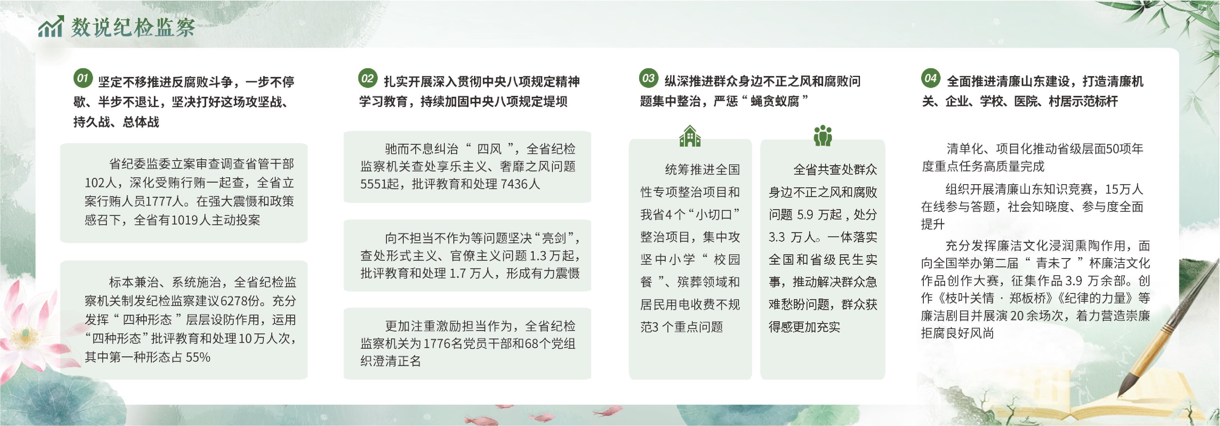 生态好了,乡亲们的日子也越来越红火。依托东平湖生态优势打造的“大宋不夜城”,强势引爆了文旅消费热潮,2万余名群众实现了稳定就业、增收致富;移民避险解困等工程也顺利落地见效,9.2万人喜迁新居。群众高兴地说:“有纪检监察在身边,烦心事有人管,生活愈发有奔头。”