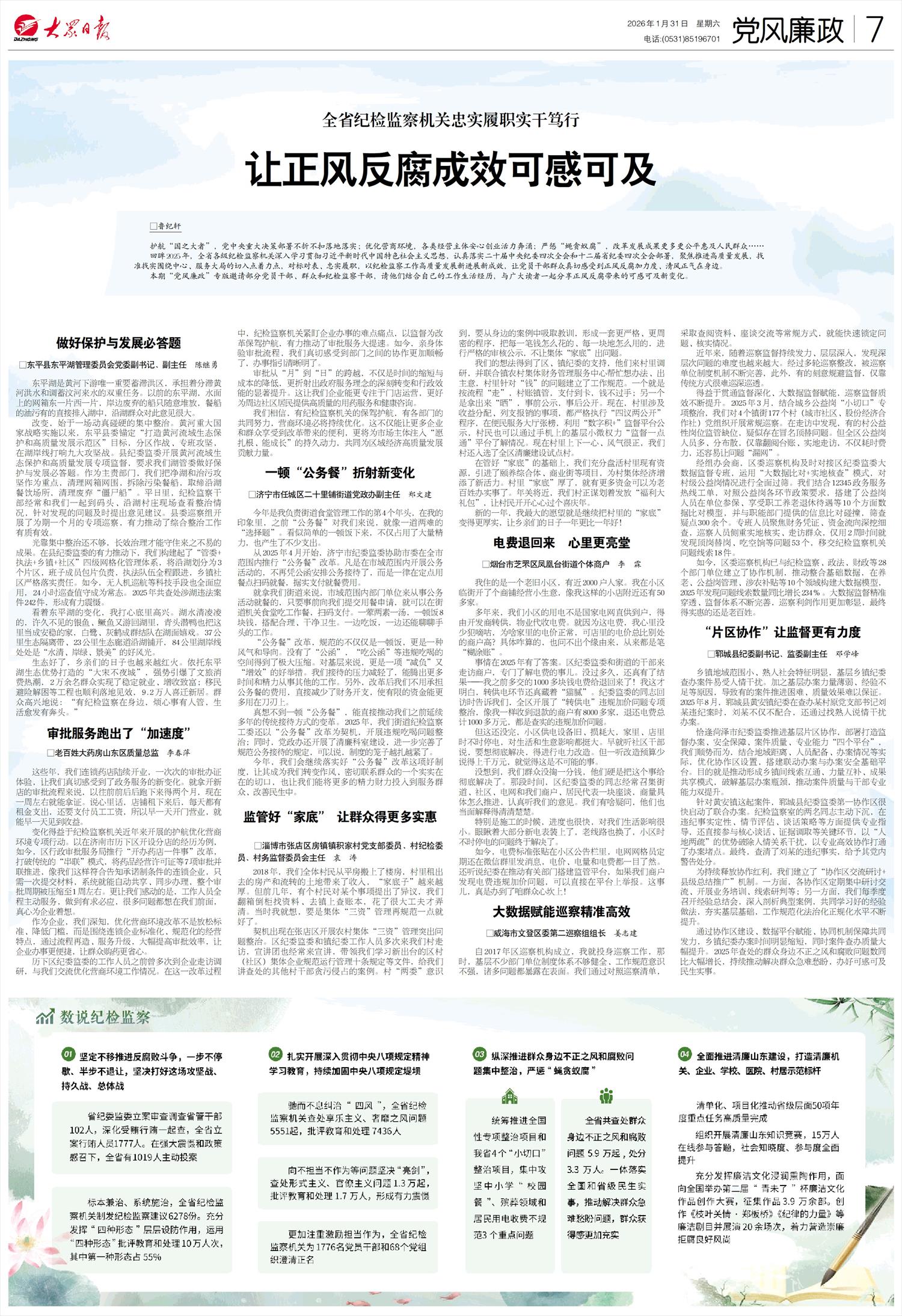 通过协作区建设、数据平台赋能、协同机制保障共同发力,乡镇纪委办案时间明显缩短,同时案件查办质量大幅提升。2025年查处的群众身边不正之风和腐败问题数同比大幅增长,持续推动解决群众急难愁盼,办好可感可及民生实事。