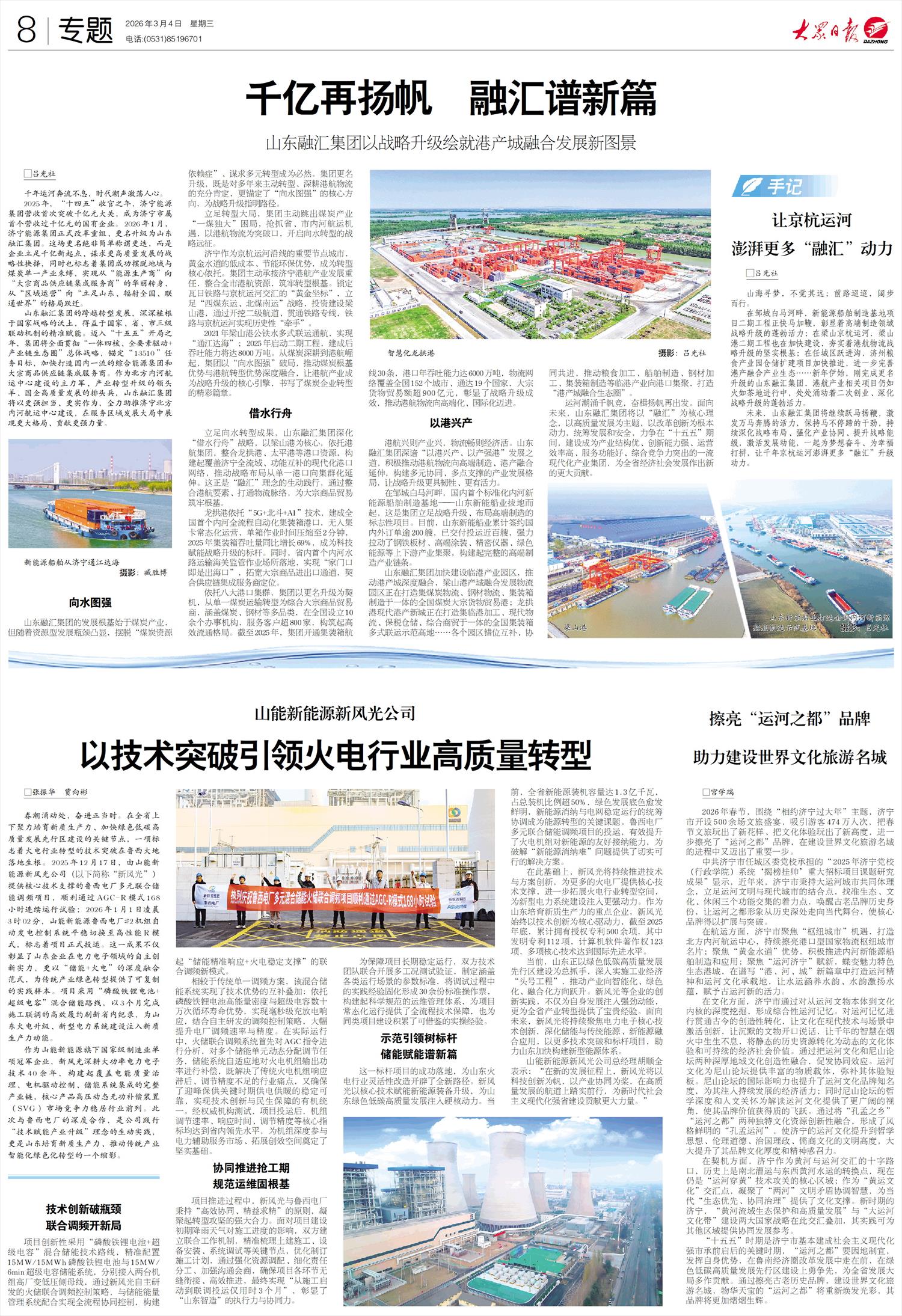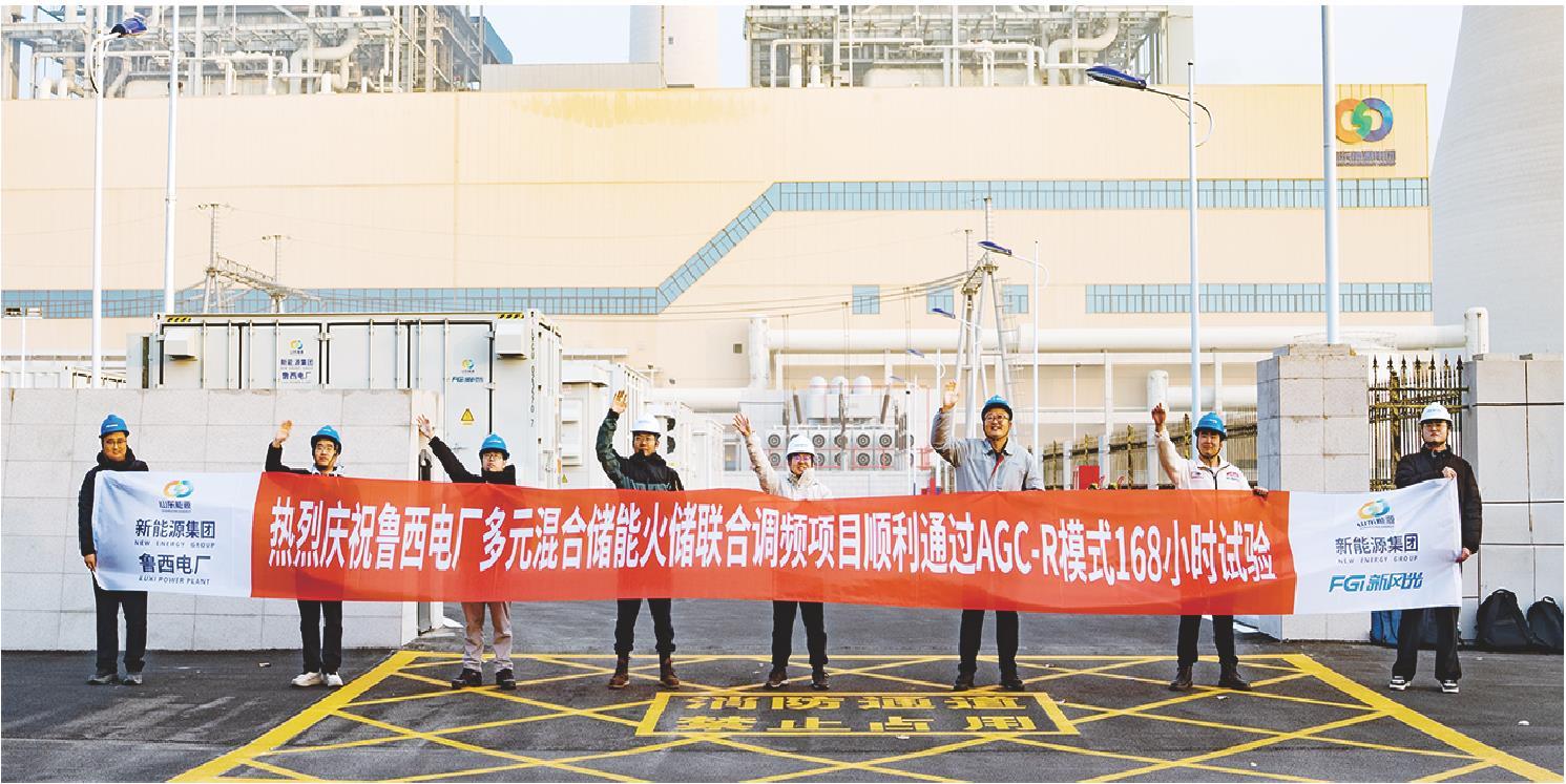 春潮涌动处,奋进正当时。在全省上下聚力培育新质生产力、加快绿色低碳高质量发展先行区建设的关键节点,一项标志着火电行业转型的技术突破在鲁西大地落地生根。2025年12月17日,由山能新能源新风光公司(以下简称“新风光”)提供核心技术支撑的鲁西电厂多元联合储能调频项目,顺利通过AGC-R模式168小时连续运行试验;2026年1月1日凌晨3时02分,山能新能源鲁西电厂#2机组自动发电控制系统平稳切换至高性能R模式,标志着项目正式投运。这一成果不仅彰显了山东企业在电力电子领域的自主创新实力,更以“储能+火电”的深度融合范式,为传统产业绿色转型提供了可复制的实践样本。项目采用“磷酸铁锂电池+超级电容”混合储能路线,以3个月完成施工联调的高效履约刷新省内纪录,为山东火电升级、新型电力系统建设注入新质生产力动能。