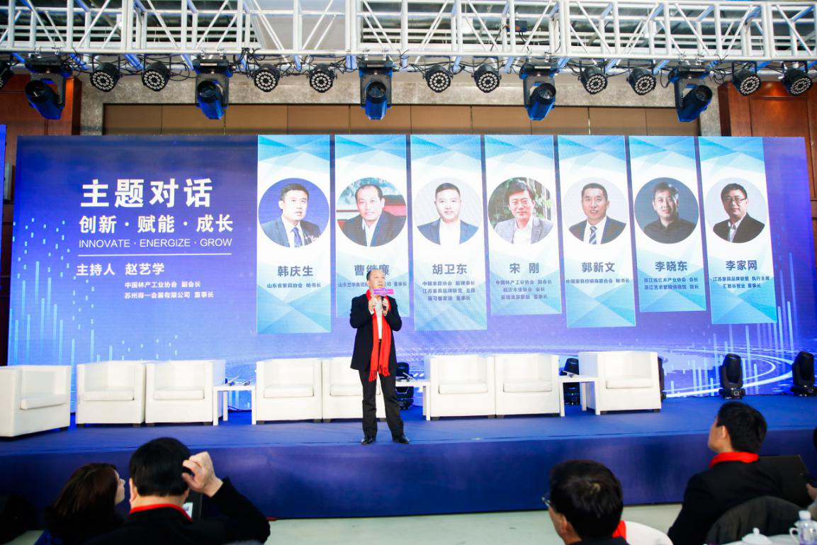 深度解读行业,为企业支招,为品牌破局。签约大会现场对话论坛环节由苏州得一会展有限公司董事长赵艺学先生主持,中国家具经销商联合会秘书长郭新文,中国家具协会副理事长、江苏家具品牌联盟主席、斯可馨家居董事长胡卫东,山东兰华集团股份有限公司董事长曹继廉,中国林产业工业协会副会长、临沂木业协会会长、安信美家家具董事长宋刚,山东省家具协会秘书长韩庆生,浙江省红木产业协会会长、浙江艺术紫檀博物馆馆长李晓东,江苏家具品牌联盟执行主席、汇智谷智业董事长李家网等领导之间,围绕“创新 · 赋能 · 成长”为主题进行了深入对话。