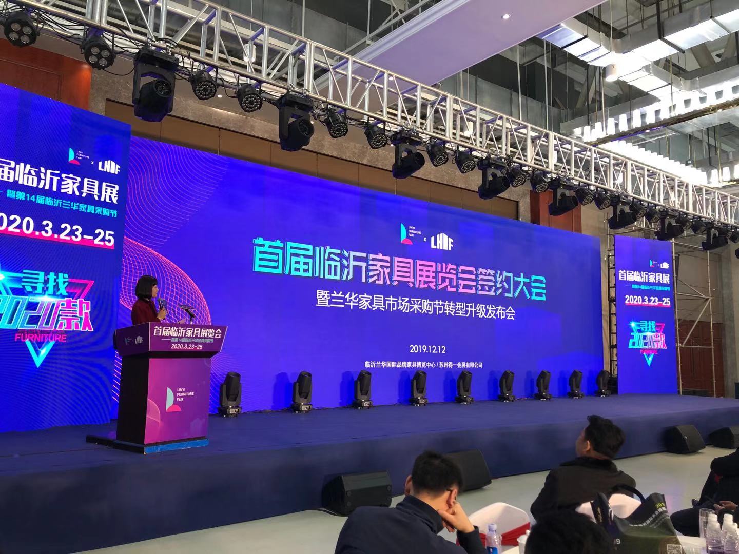 12月12日下午,由山东兰华集团股份有限公司与苏州得一会展有限公司联合主办的以“临机应变 沂为新声”为主题的首届临沂家具展览会签约大会暨兰华家具市场采购节转型升级发布会在临沂商城蓝海大饭店隆重召开。现场千余名家具参展商参加本次大会。