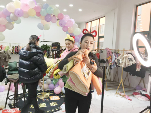 “整点了!整点了!老铁们准备刷礼物啦。”随着阿萱童装主播一声喊,周围又是一片忙碌。电脑音响叮叮作响,每秒钟都接到订单。“爆单了!昨天9000单,今天轻松破1万。”负责阿萱童装运营的王洪丽说。她们用的快手直播电商号运营不到一年,就有了56万粉丝。“过去五年在商城做传统批发,一天批发三四百件。现在一天平均近1万单,干一天赶过去干三个月。”王洪丽说起直播电商很兴奋,临沂快手直播电商大部分从实体店转型,全国快手直播电商货大都从临沂出去,快手电商注册量临沂稳居全国第一。