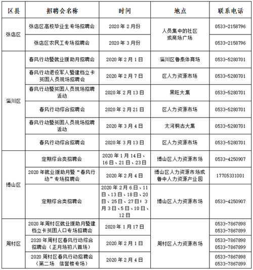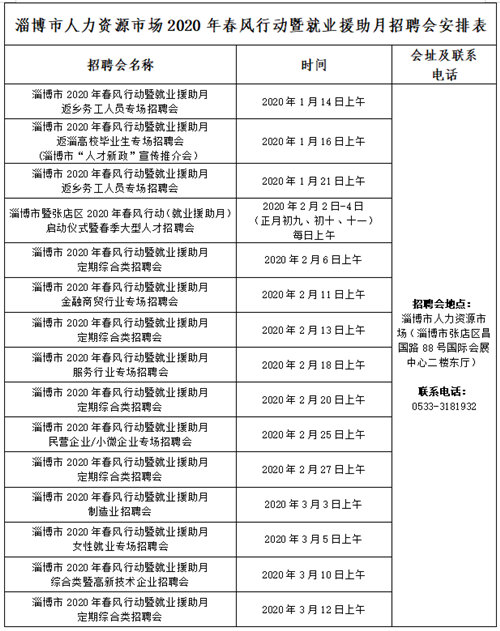 淄博市2020年春风行动暨就业援助月招聘会安排表