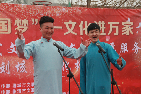 “‘我们的中国梦’——文化进万家活动,旨在引导广大文化文艺工作者面向基层、服务群众,以丰富多彩的文化活动和艺术作品,不断满足人民群众对文化生活的新需求、新期待,不断提升人民群众的文化获得感、幸福感,助力脱贫攻坚战、全面建成小康社会,推动乡村文化振兴。”聊城市文联副主席谢艳丽表示。