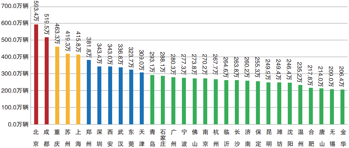 中国30个城市汽车保有量超200万辆,山东有4个城市
