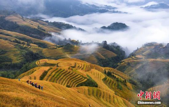 10月20日拍摄的广西桂林市龙胜各族自治县龙脊梯田云海景观。 潘志祥 摄