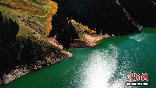 深秋时节的九寨沟景区满山的彩林与碧蓝的海子交相辉映,宛如一个色彩缤纷的童话世界。曹惠君 摄