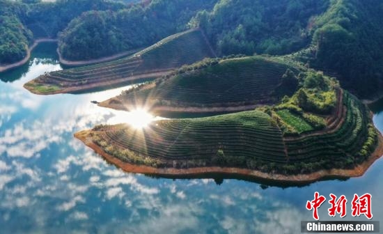 10月26日,俯瞰浙江省杭州市淳安县“湖上茶园”浮在千岛湖碧波之上。 中新社发 杨波 摄 图片来源:CNSPHOTO