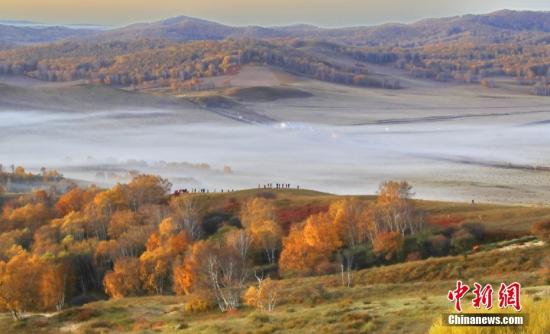 内蒙古乌兰布统大草原晨雾缭绕,金秋景美醉人。中新社发 刘宪国 摄 图片来源:CNSPHOTO