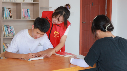 暑假期间,大学生志愿者在农家书屋带领孩子们学绘画、书法和安全教育知识,将辖区的留守儿童吸引到农家书屋来,丰富他们的暑期文化活动,增强课外阅读兴趣,真正让“农家小书屋”成为孩子们的“暑期乐园”。学生潘常玲说,暑假没事我就经常来这里看书学习,而且还有一些大哥哥大姐姐陪我们一起学习,有什么不会的问题我们可以向他们请教,他们都很认真细心的给我们讲解,我收获了很多而且这里离家比较近,爷爷、奶奶们也比较放心。