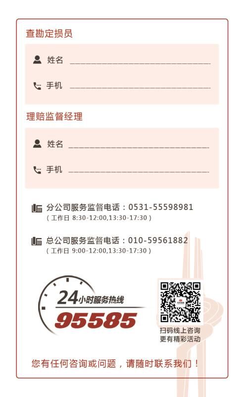 在疫情防控的特殊时期,中华保险山东分公司按照上级监管部门的要求,积极开展线上服务维权宣传活动。同时为做好疫情下零接触服务工作,拓宽客户维权和咨询渠道,设计了独居中华特色和山东特色的精美电子服务监督卡片。