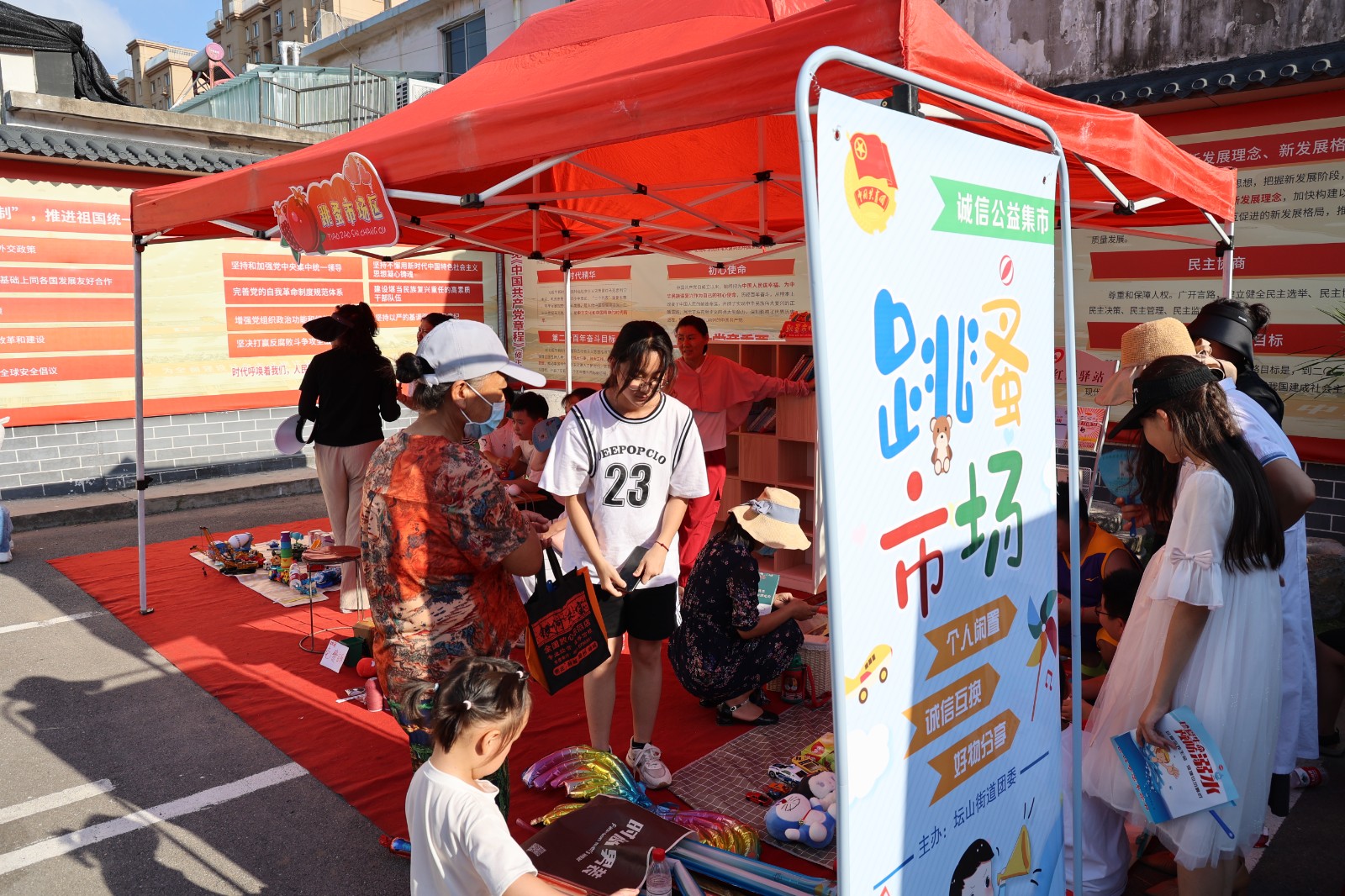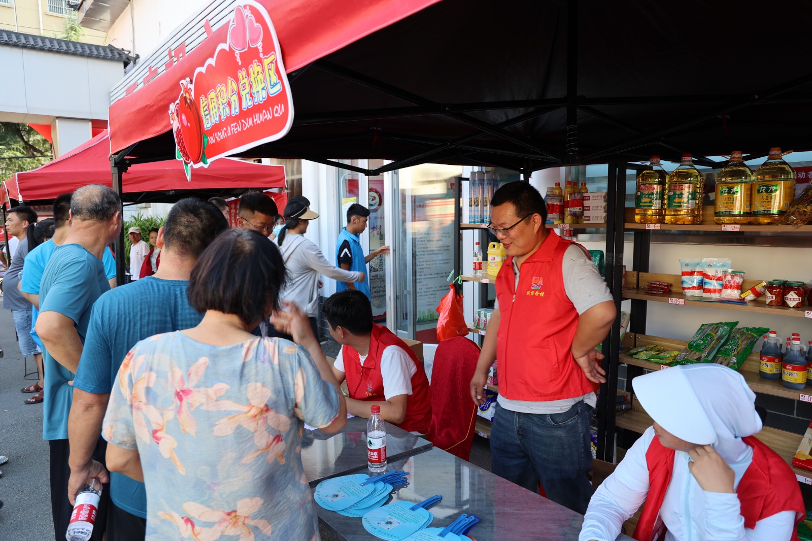 本次活动的召开得到辖区多家爱心商家的大力支持,诚信公益集市现场,为辖区居民准备了榴花分注册、信用积分兑换、爱心义剪、百姓食堂等系列服务项目,大家纷纷积极参与体验。