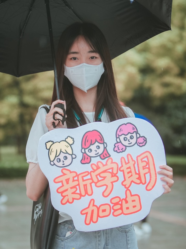 9月4日,山东艺术学院迎来2021级省内新生报到。长清校区,大一新生们在雨中撑伞来到报到现场,虽然大部分学生戴着口罩,但难以遮掩她们青春洋溢的气质与美丽时尚的形象,处处焕发着青年学子的艺术气息,成为校园内一道靓丽的风景线。
