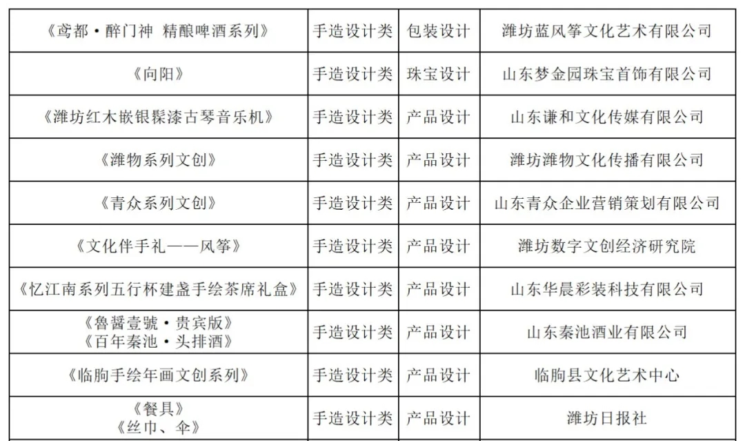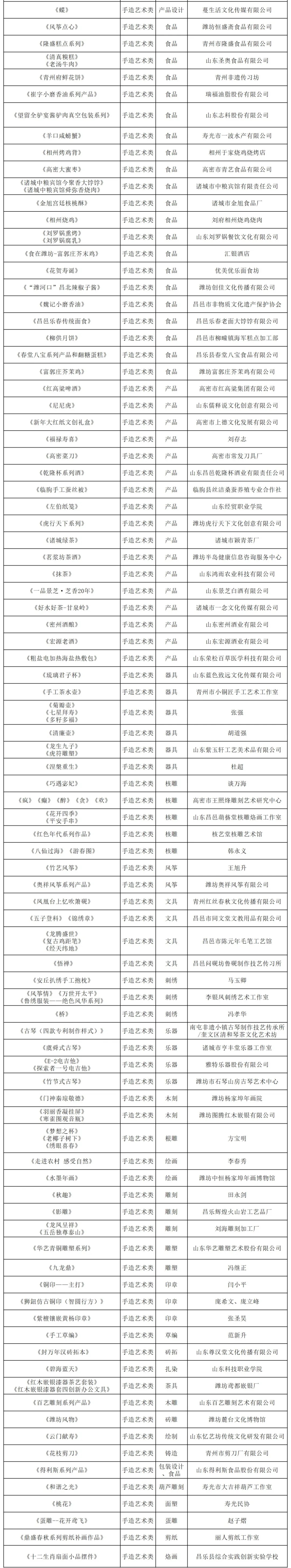 此次优选100名单的发布,是潍坊市推进“山东手造”工程的重要活动,也是该市开展“文化和自然遗产日”的预热。“山东手造•潍有尚品”优选100项目名单如下: