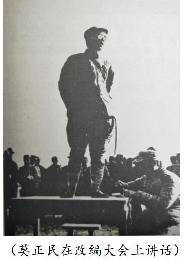 但此后不久,莫正民又听说7月间率部投奔八路军的伪“灭共建国军”第八团团长王道被杀了的谣言,态度又开始怀疑动摇。于是滨海军区乘他的副官长王绍石来联络的机会,让王道同其会面。王绍石回去后,立即将这个消息告诉了莫正民。莫正民这才彻底放下心,立即表示:“我姓莫的抗日走在王道的后面,但一定要办得比他漂亮。”借此机会,谷凤鸣向莫正民正式提出起义的问题。随后,滨海军区敌工科科长史甄以军区秘书长的名义同莫正民会面,双方议定了起义的具体方案。莫正民向滨海军区递交反正志愿书,决心准备起义。滨海军区给莫正民保证书,起义后任旅长,并惩办祸首。莫正民保证在起义前不“扫荡”抗日根据地,不抢掠,广泛设立八路军工作联络站与联络员,待机反正等。9月,莫正民在家中举行中秋节宴会,谷凤鸣借机与之详细研究了起义前的准备工作,包括抓紧向日军要钱、要粮、要弹药,放在可靠的据点里备用等。