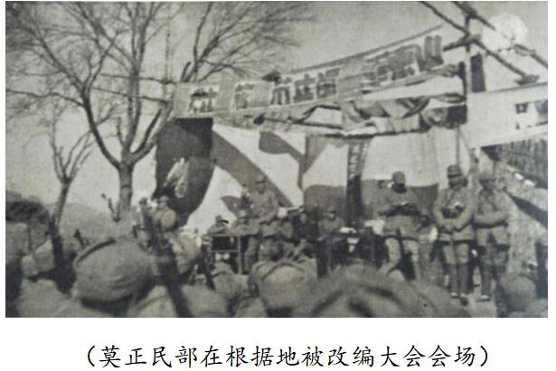 15日晨,反正的伪莒县保安大队驻城及分布莒中县各据点的官兵在八路军敌工人员和莫正民的带领下,出城至桑园,沿途受到抗日军民的热烈欢迎。21日,莫正民部在根据地莒南县柳沟村被改编为山东军区独立第二旅,辖3个团,莫正民任旅长,陈勉任副旅长,马骅任参谋长,王东年任政治部主任,谷凤鸣任政治部副主任。1945年8月,独立第二旅编入山东军区警备第十一旅。